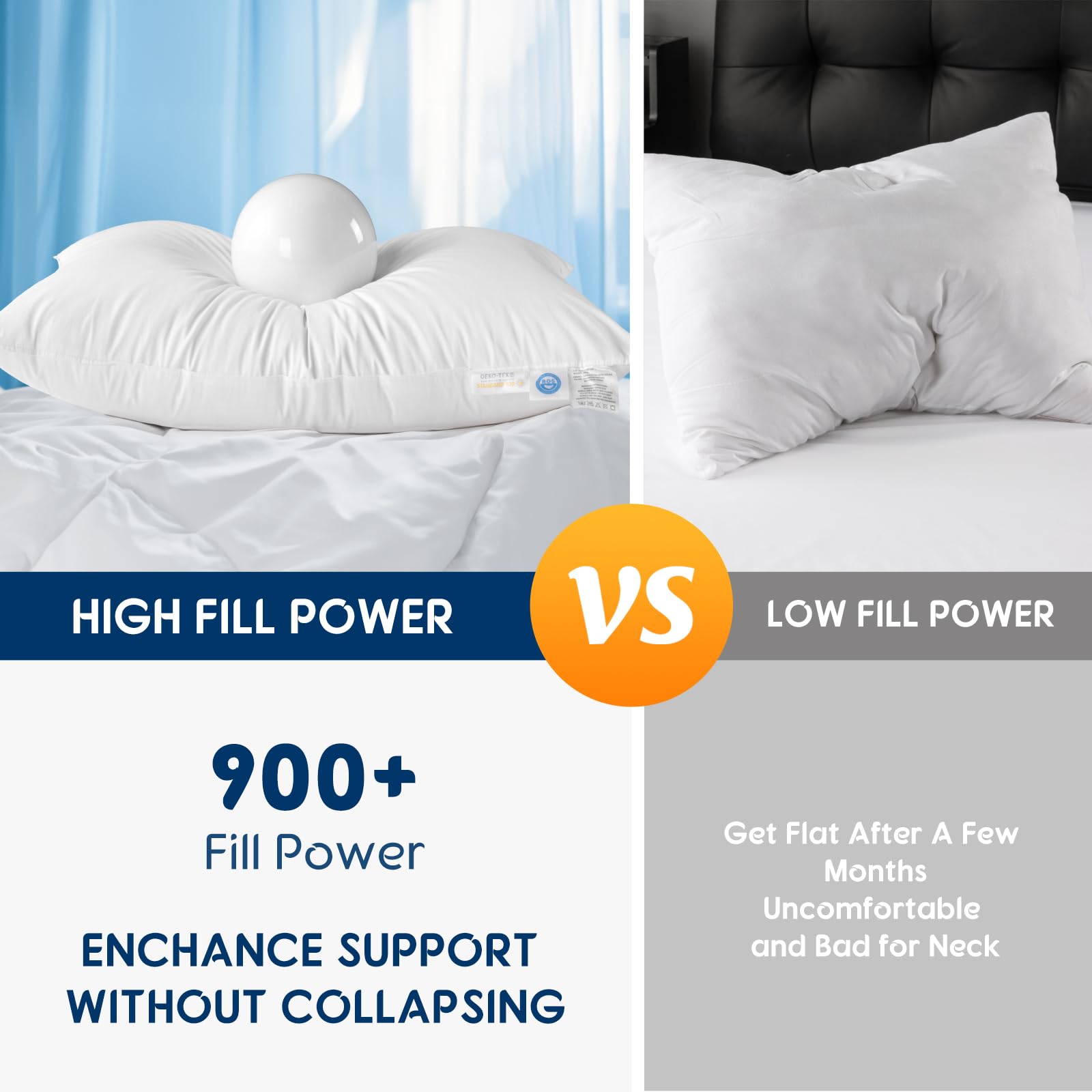 - Premium Down Pillow: Our 900-fill power goose-down pillow, with 80% goose down and 20% goose feather, offers unmatched softness, loft, and durability; Goose down’s larger, fluffier clusters outperform Duck Down, delivering superior comfort, breathability, and long-lasting luxury