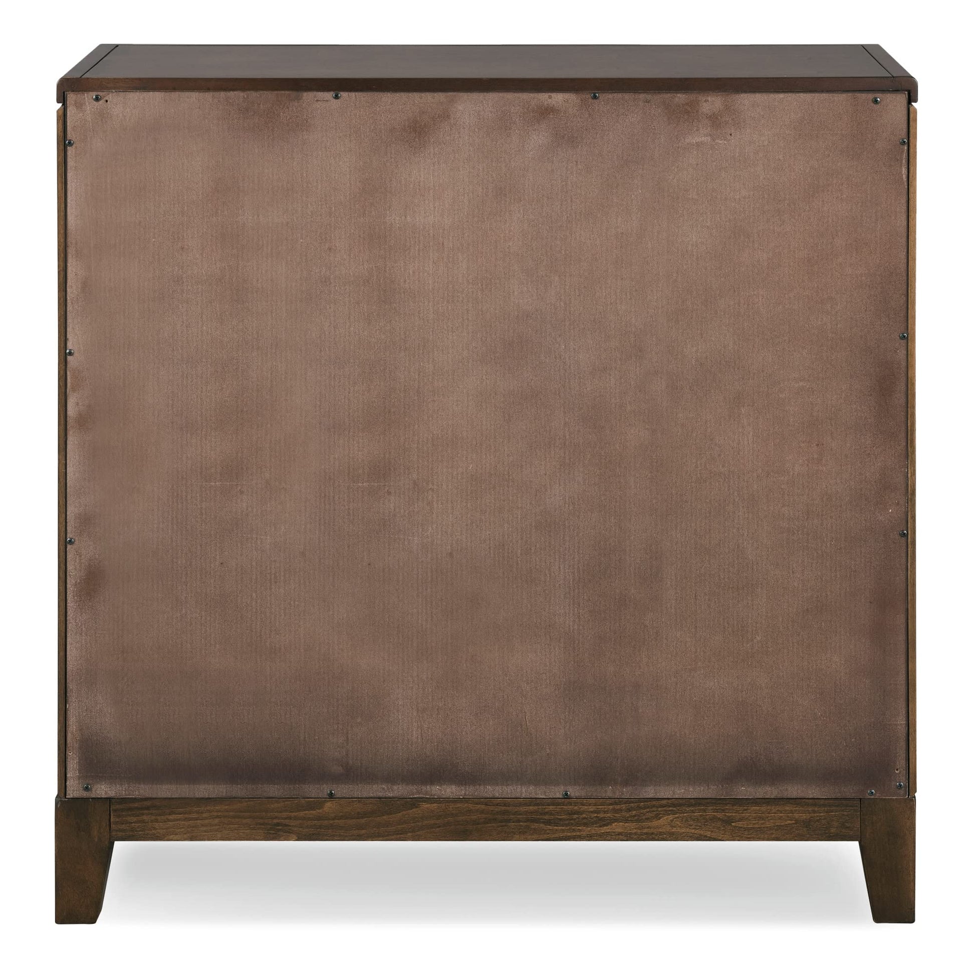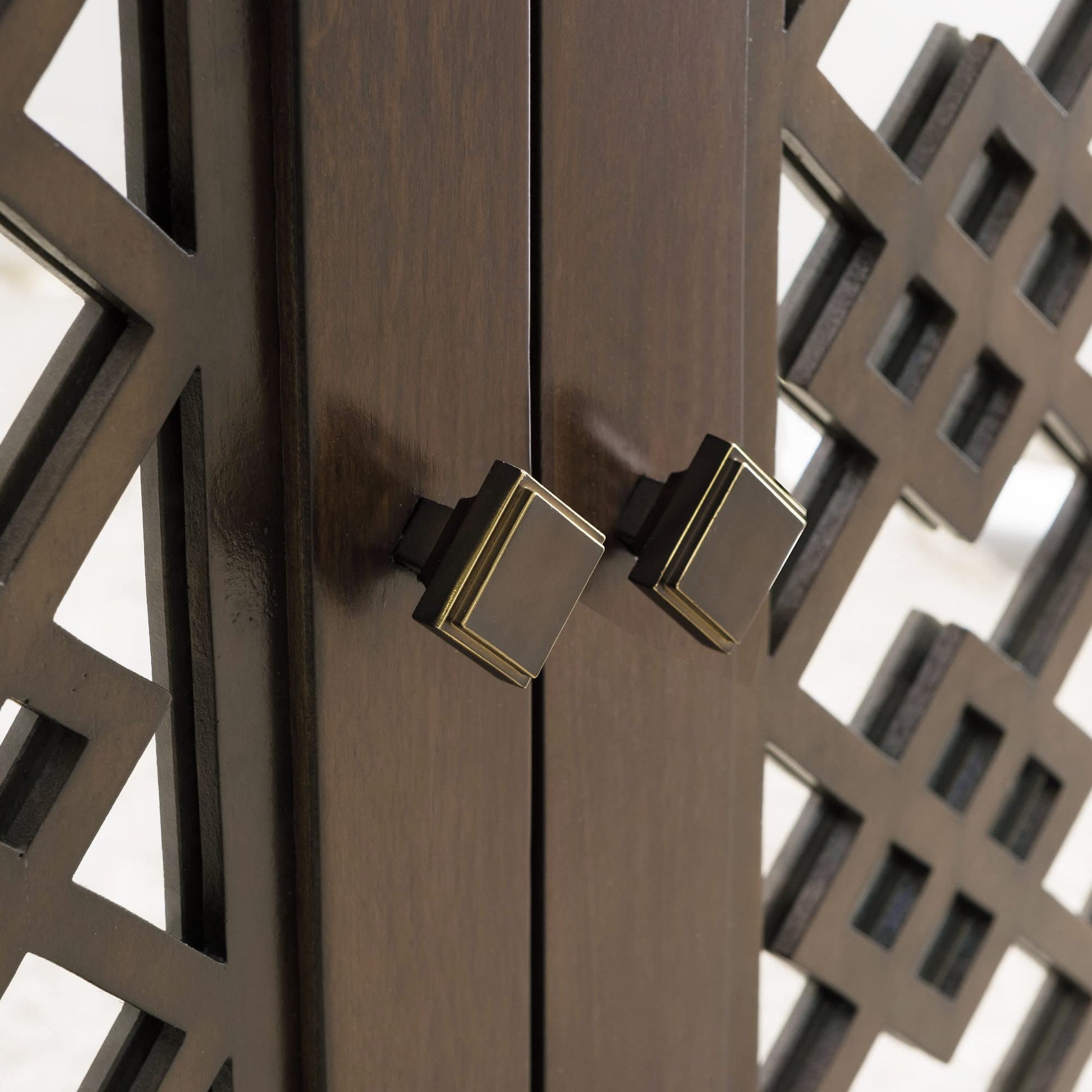 - Rich Walnut finish with mirrored doors and diamond filigree pattern