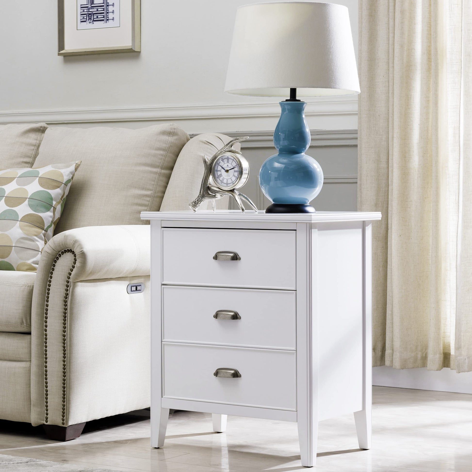 10522-WT Laurent Nightstand Side Table Three Drawers Traditional USB-C Fast Charging