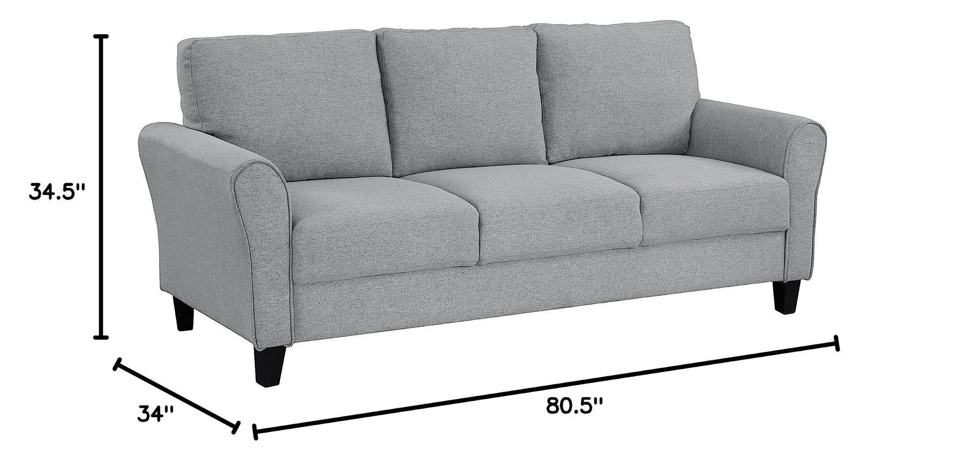 Details: Versatility of style, paired with a neutral hue creates the look of the Eloise Collection. Covered in a dark gray textured upholstery, the sofa features flare arms and welt trim, the tailored look pairing perfectly to a multitude of home settings.