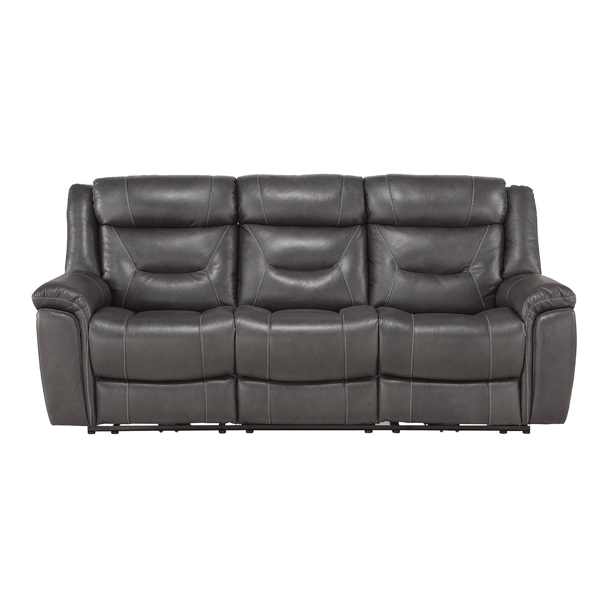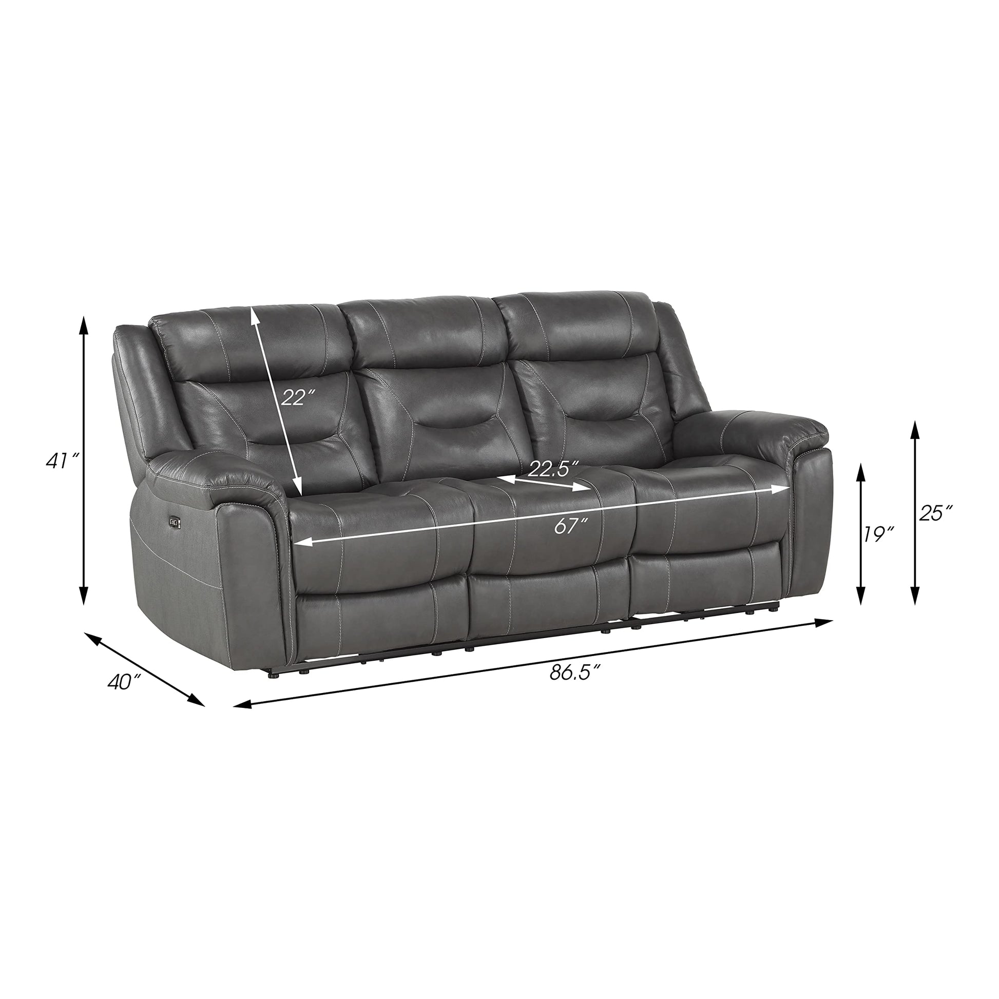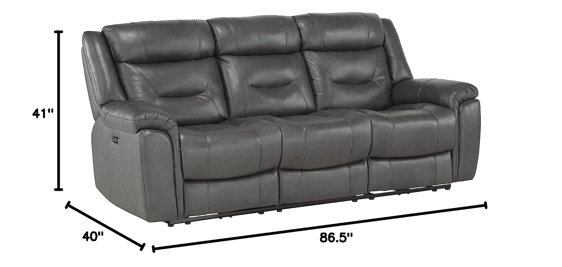 Top Grain Leather Power Double Reclining Sofa, Dark Gray