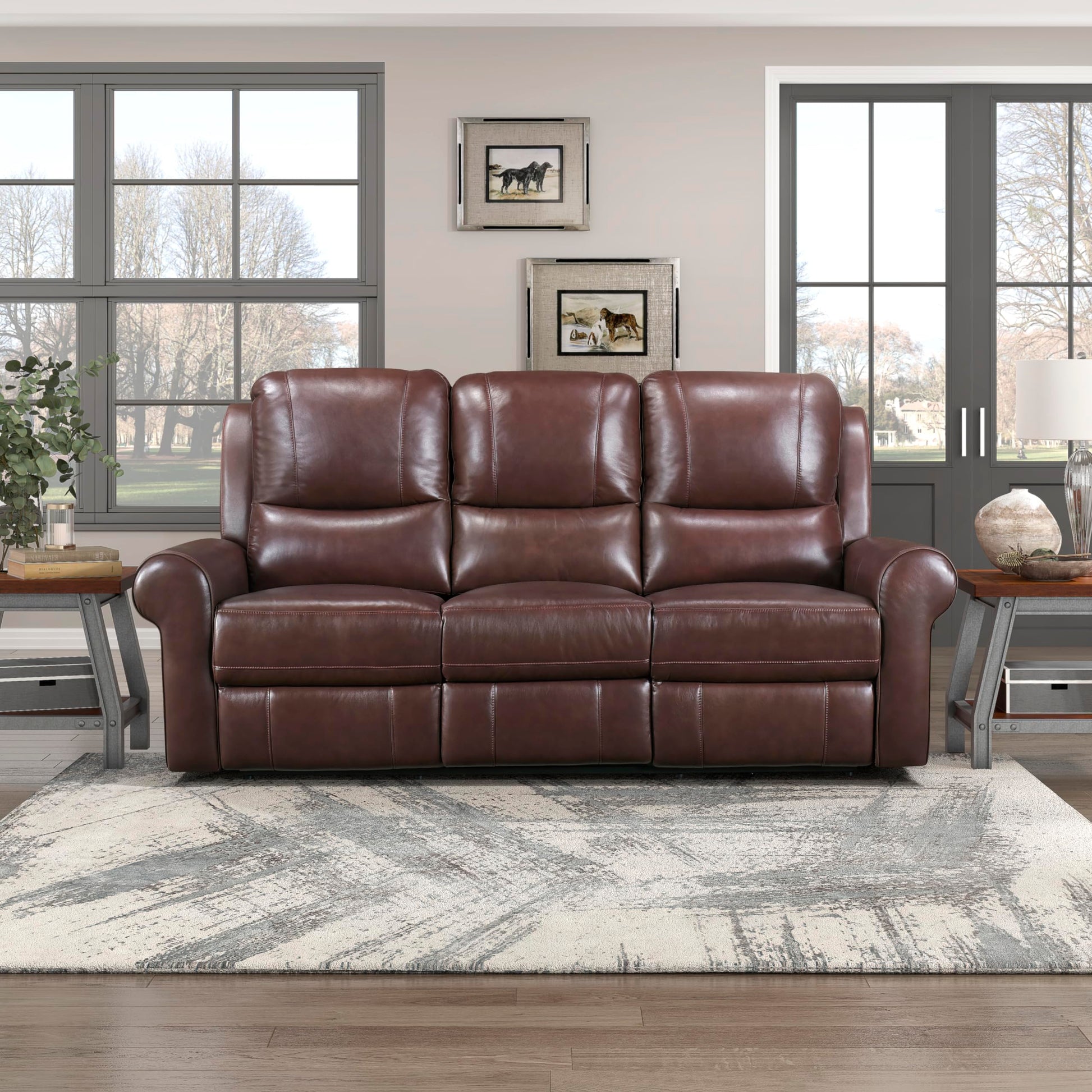 - Transitional Look + Leather Match Upholstery + Rolled Arm