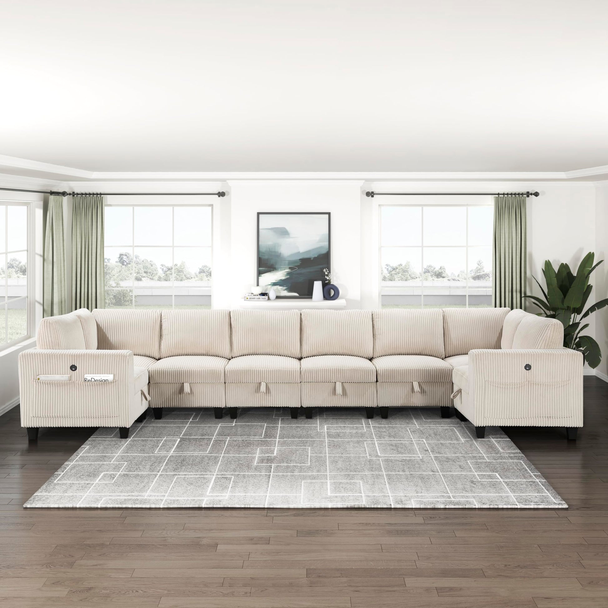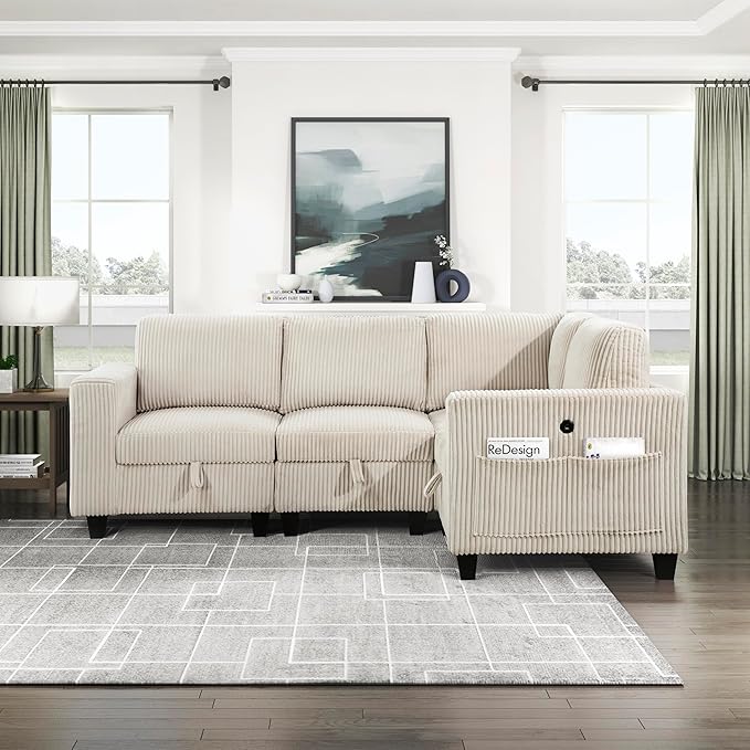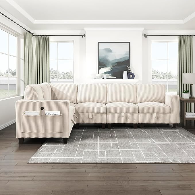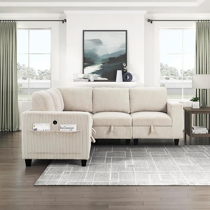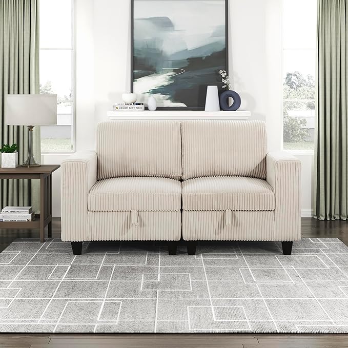 - [Modular Design] Two (2) units one arm chair + Four (4) units armless chair + Two (2) units corner seat. Each piece of the sectional sofa couch can be move and rearrange freely.[Perfect for Living Room] The contemporary sectional sofa is crafted for versatile functionality, optimizing your room space. Particularly suitable for living rooms, apartments, and dormitories, this living room sofa maximizes available space effectively. Underneath the sofa lies ample storage space, ideal for storing bedding items conveniently.