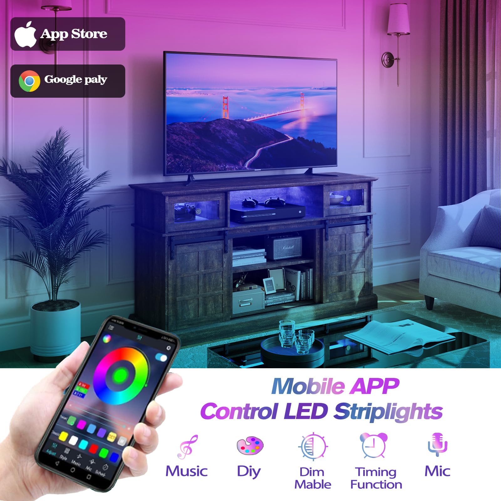 - This TV stand with RGB LED lights, it has 16 million full colors + 22 dynamic modes.It can create different atmospheres and provide you with an excellent immersive viewing experience.