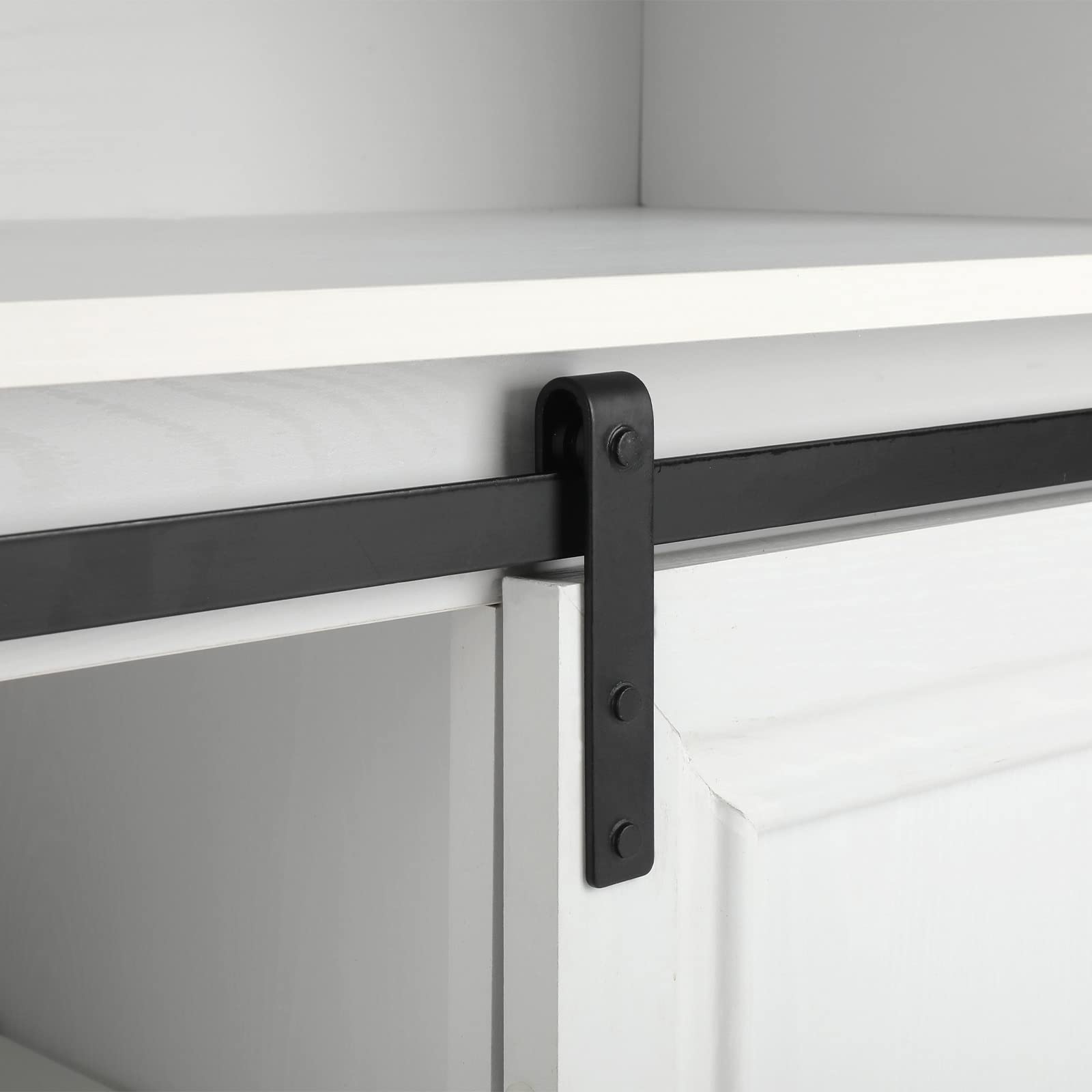 - Featuring two sliding barn door styled tv stand fronts for a versatile design where you can either close off the middle or both sides, depending on your needs.
