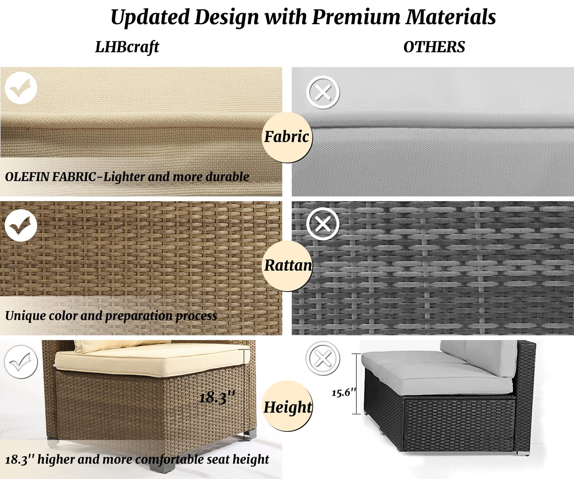 - DURABLE MATERIAL & PRACTICAL DESIGN-PE rattan wicker has good performance in high tensile strength, durable but light-weight,newly developed rattan color and preparation method. High quality steel frame, zippered and washable cushions filled with thick cotton for optimal relaxation and easy clean,The cushion is made of outdoor special material, which is more high-end than other products. The table with storage allows storing multiple items for easy access anytime.