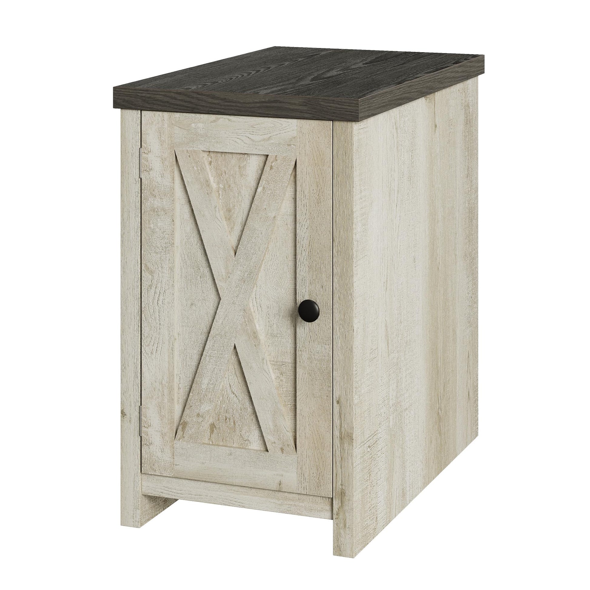 Farmhouse End Table, Narrow Night Stand with Storage and Barn Door, Wood End Side Table for Living Room/Small Space, Rustic White