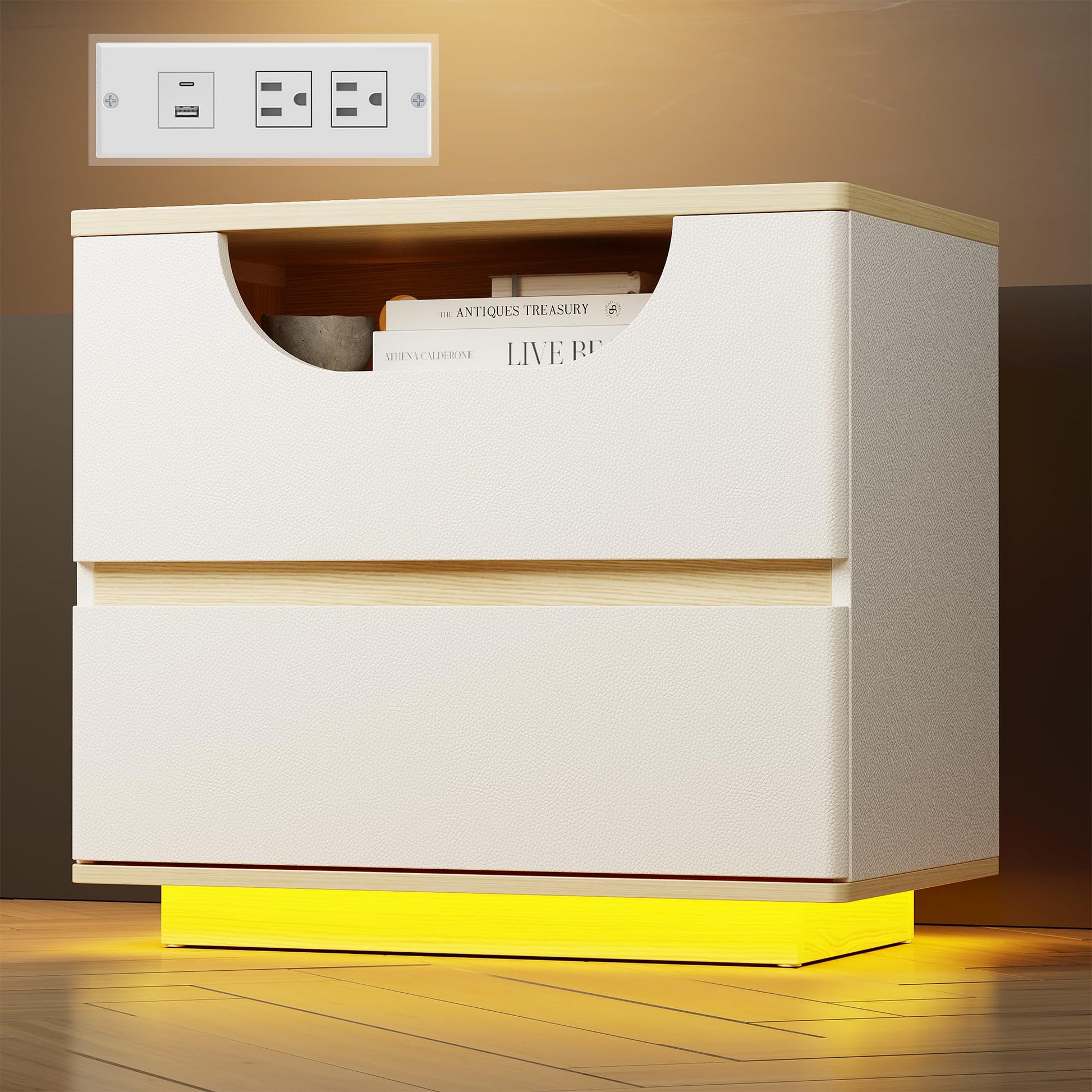 - QUALITY CRAFTSMANSHIP: This LED end table is made of high-quality microfiber leather and high-density board. the leather is delicate and soft to the touch, giving you a better use of experience