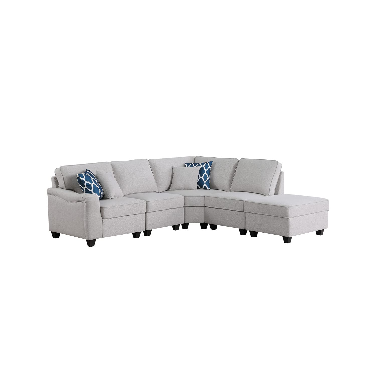 5 Piece Modular L-Shape Sectional Sofa with Ottoman, Dark Gray