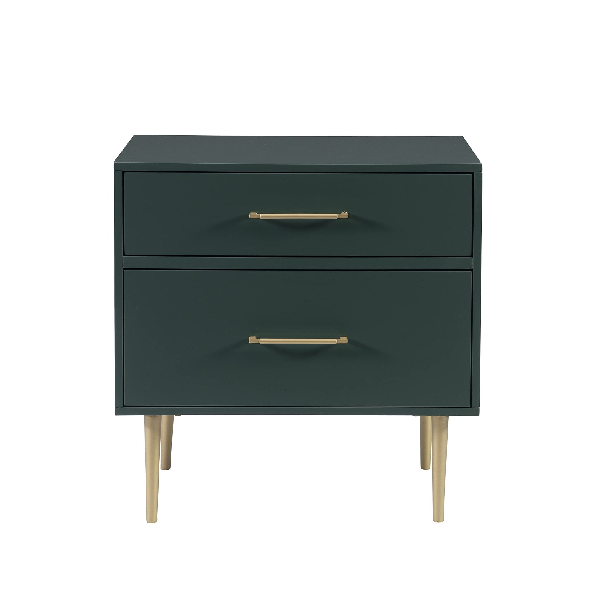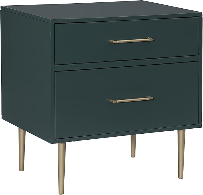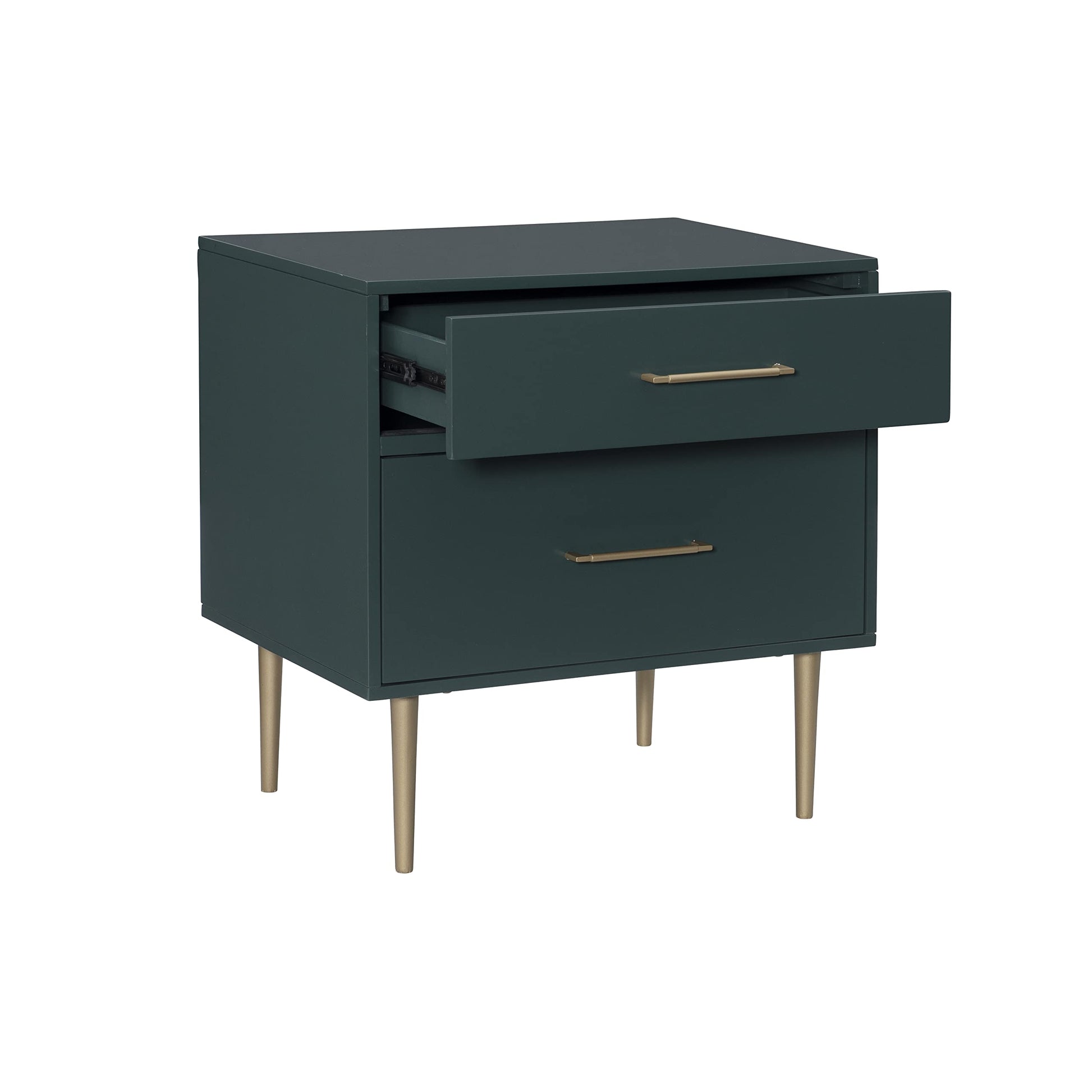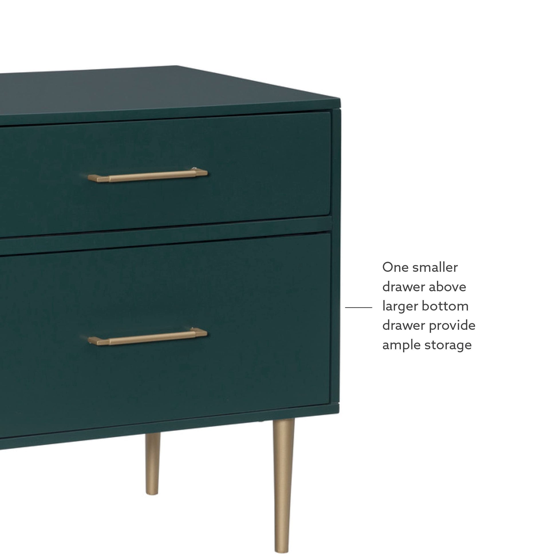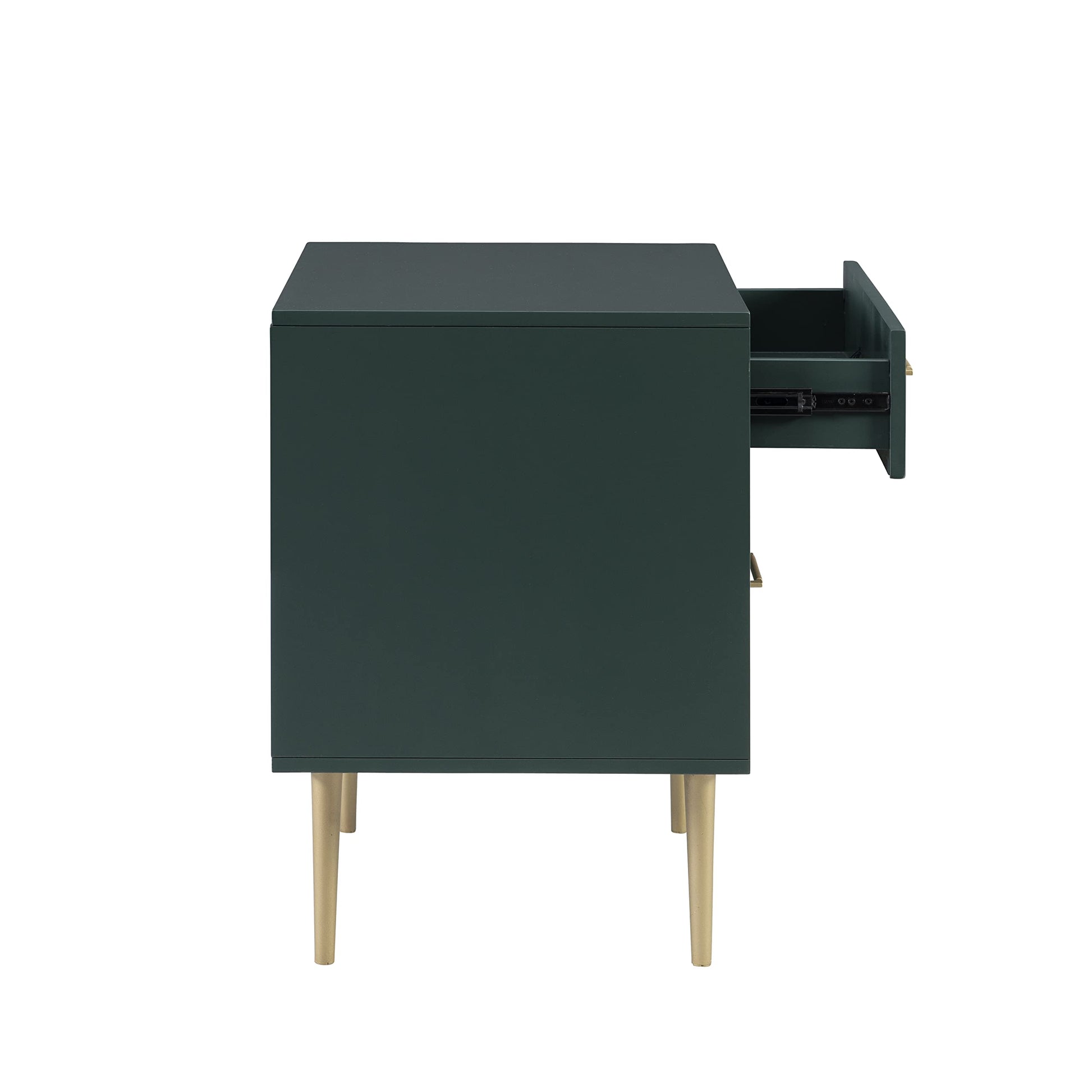 Linon Modern Dark Green Gold Hardware Lennon Two Drawer Nightstand