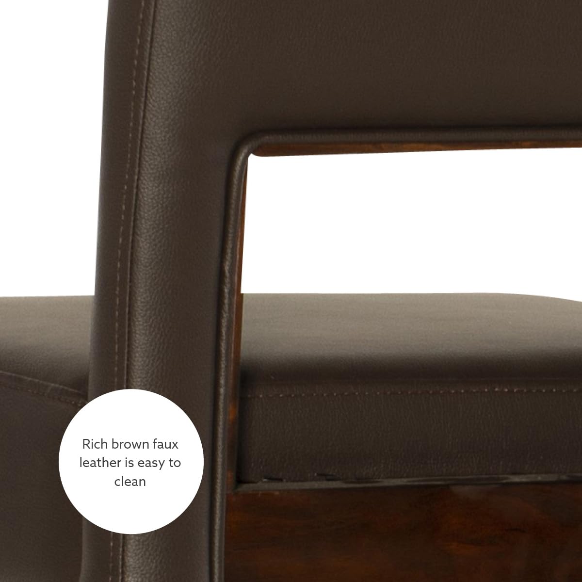 - Easy to clean, brown faux leather upholstery