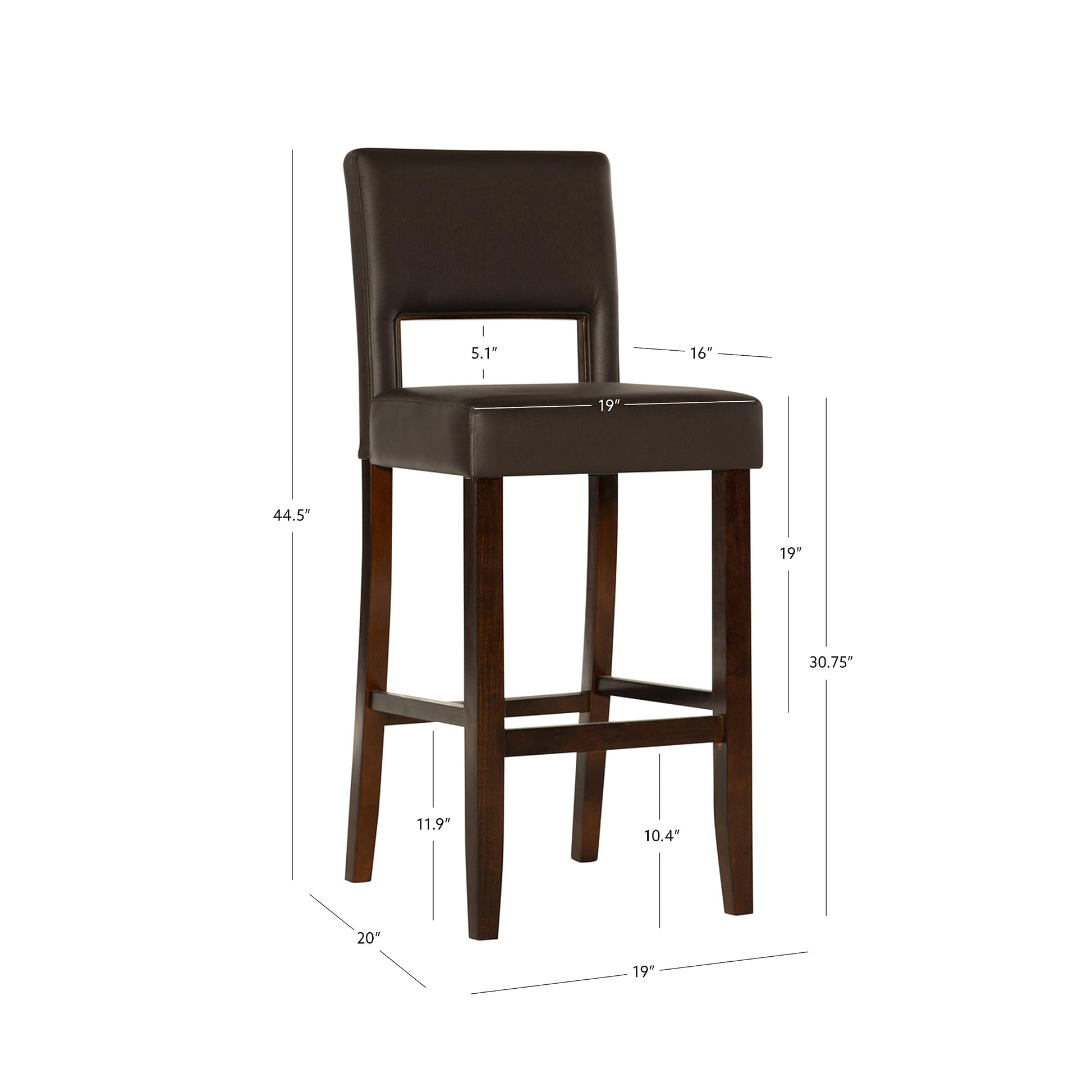 Vega Espresso Brown Barstool, 19" W x 20" D x 44.5" H
