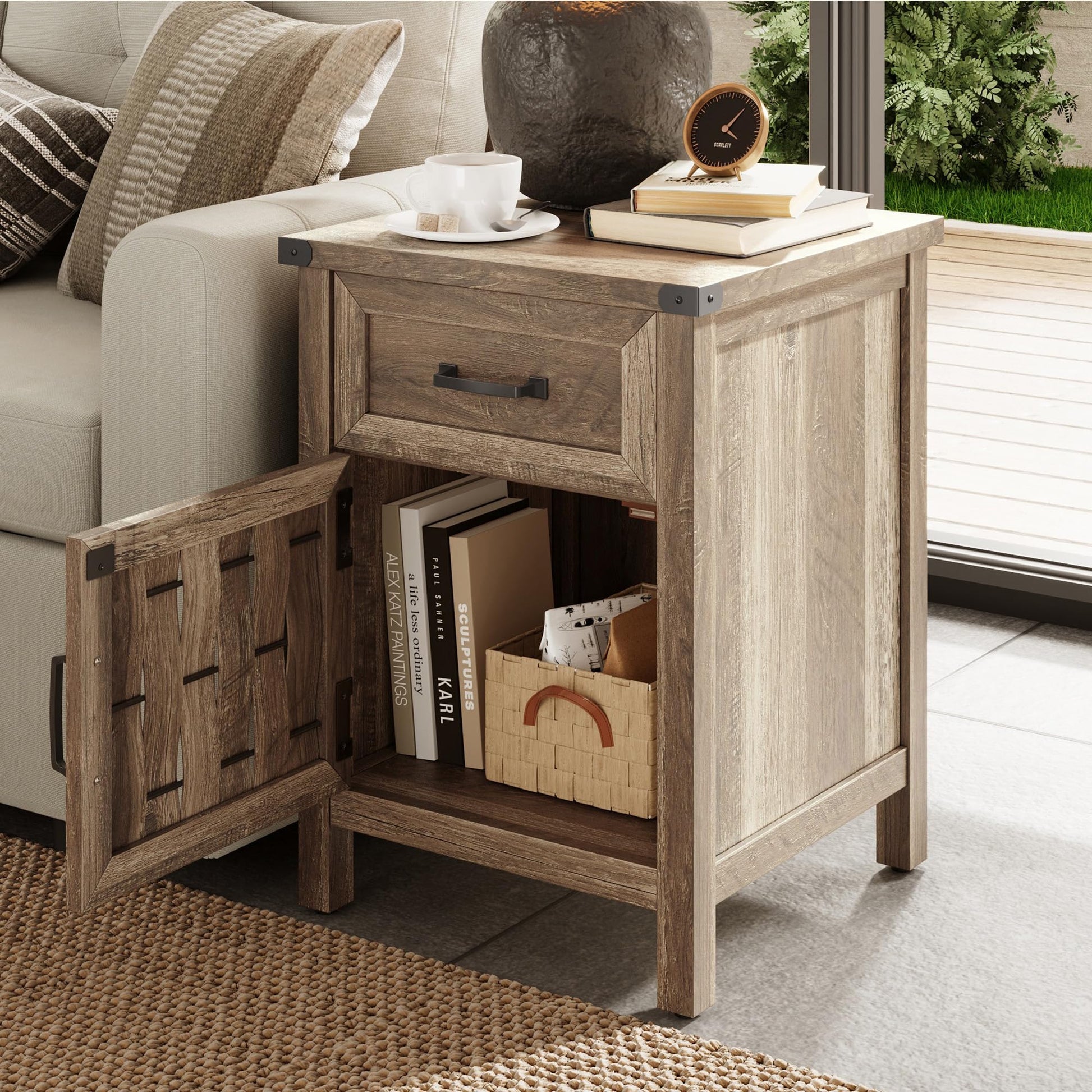 - Farmhouse Nightstand - Merging farmhouse and modern elements to suit all home decor styles, this nightstand is the ideal addition to infuse personality and charm into your bedroom, living room, and other small spaces