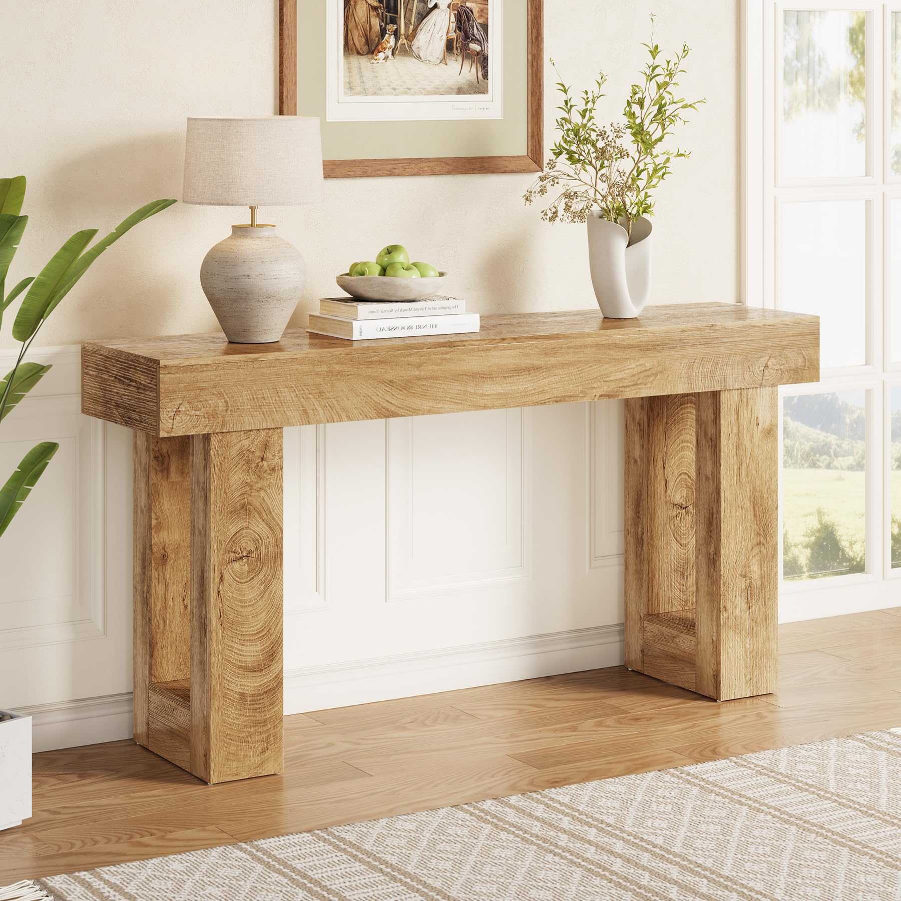 - Rustic Charm: Crafted with a beautiful oak finish, the wooden tabletop of the console table exudes a warm and welcoming feel, perfect for any entryway or living space.