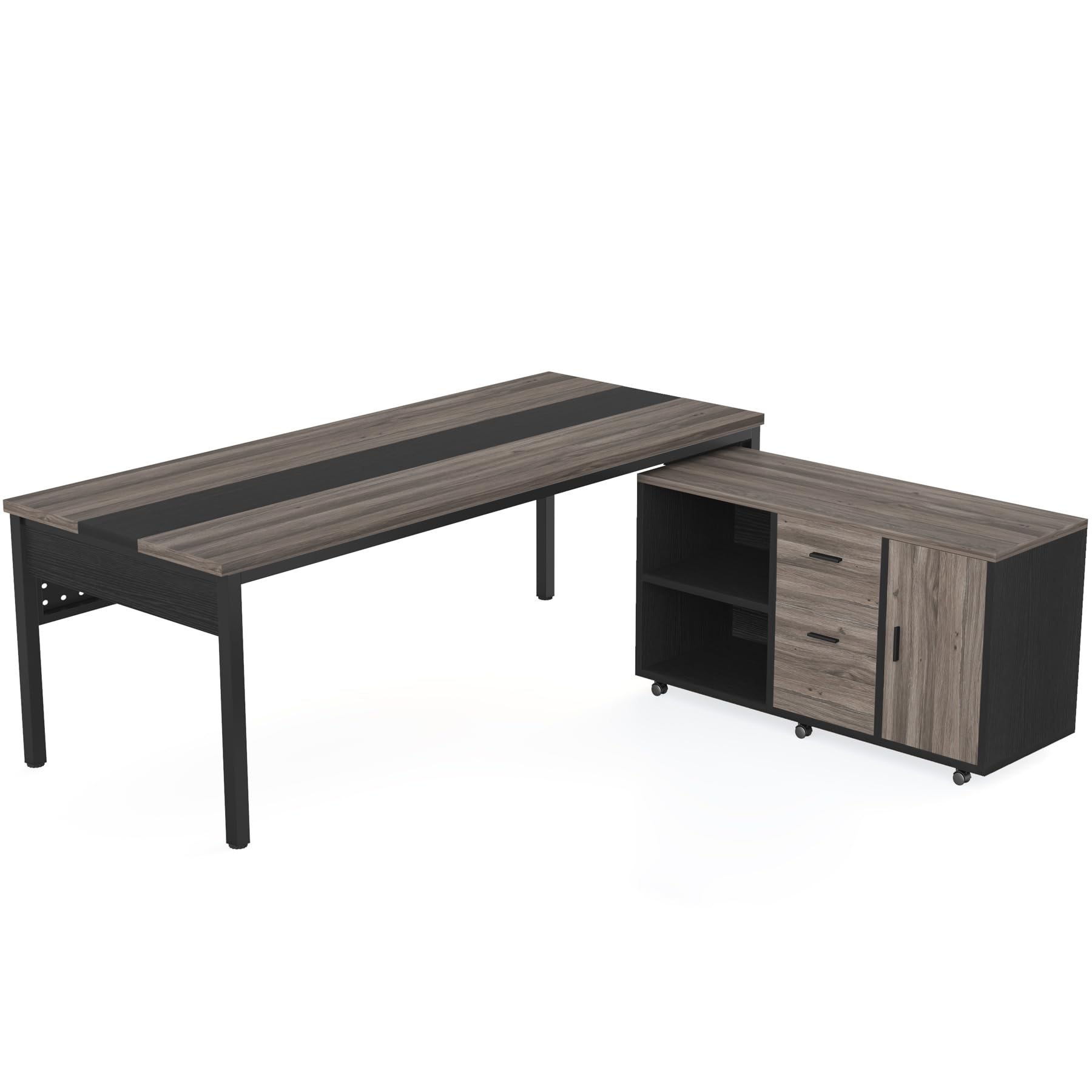 - Imagine having a spacious executive desk with a massive tabletop measuring 70.8"W x 31.49"D to tackle your workload like a boss! With this executive computer desk, you'll have ample room to spread out your paperwork, computer, and office essentials to get things done quickly and efficiently. What's more, the 47.2"W x 15.7"D filing cabinet provides extra space to store your files and other office supplies.