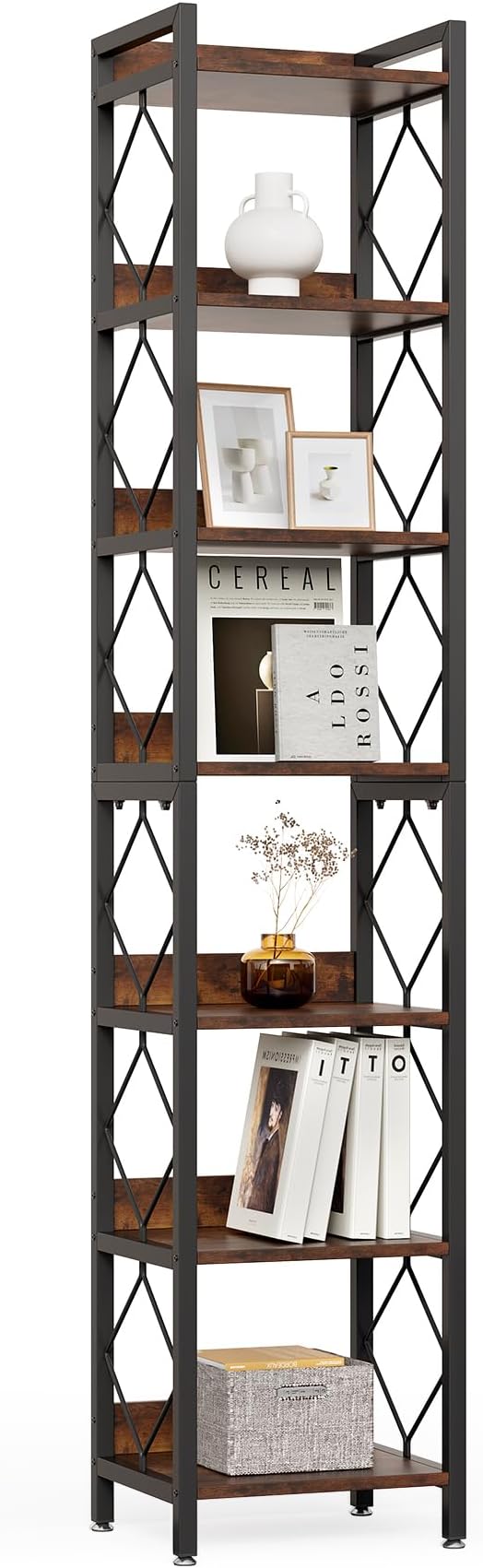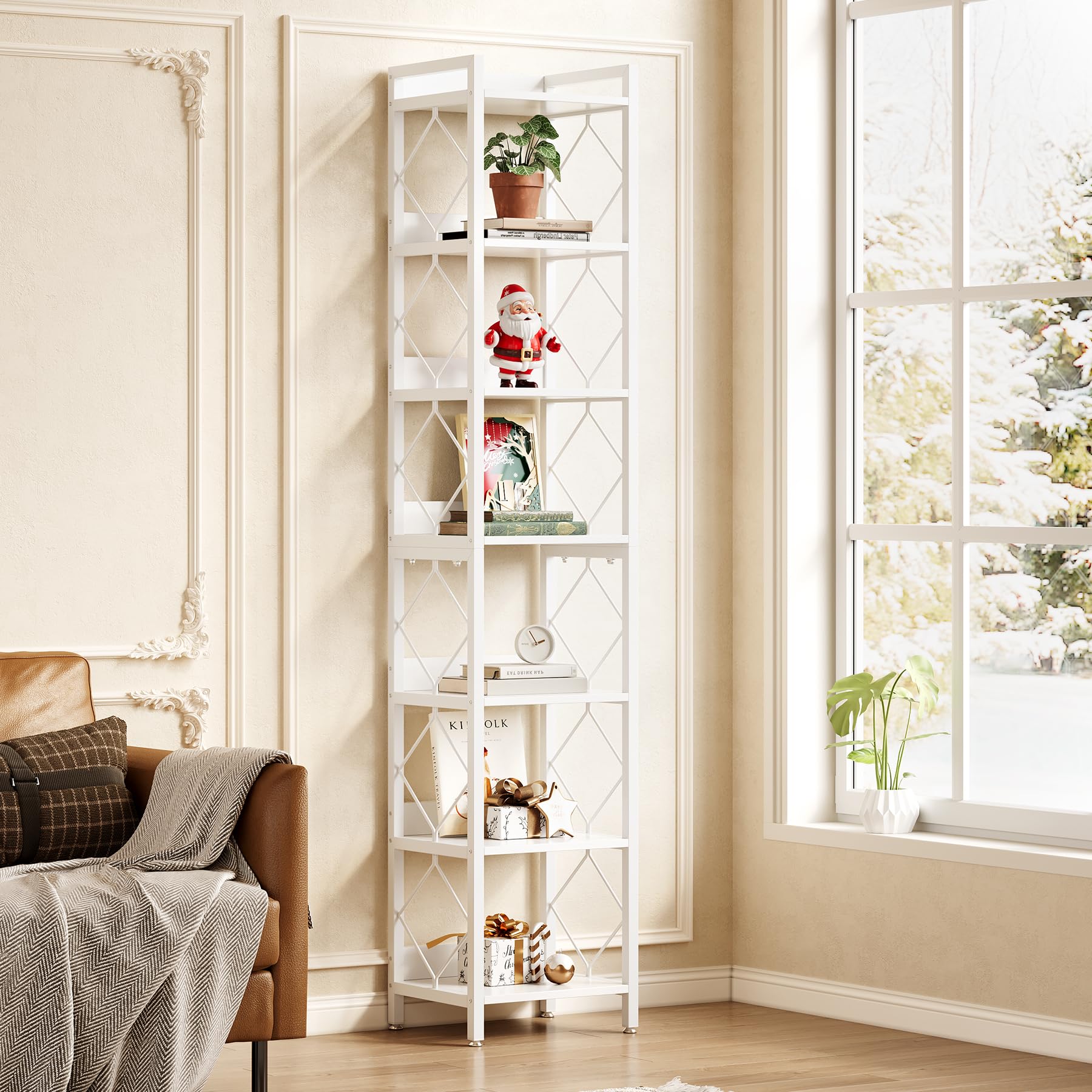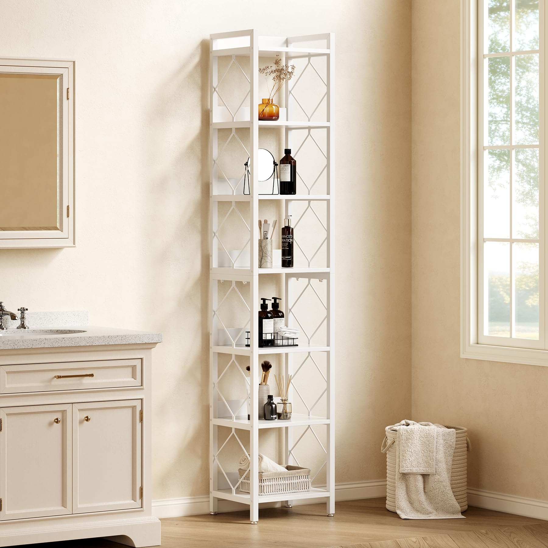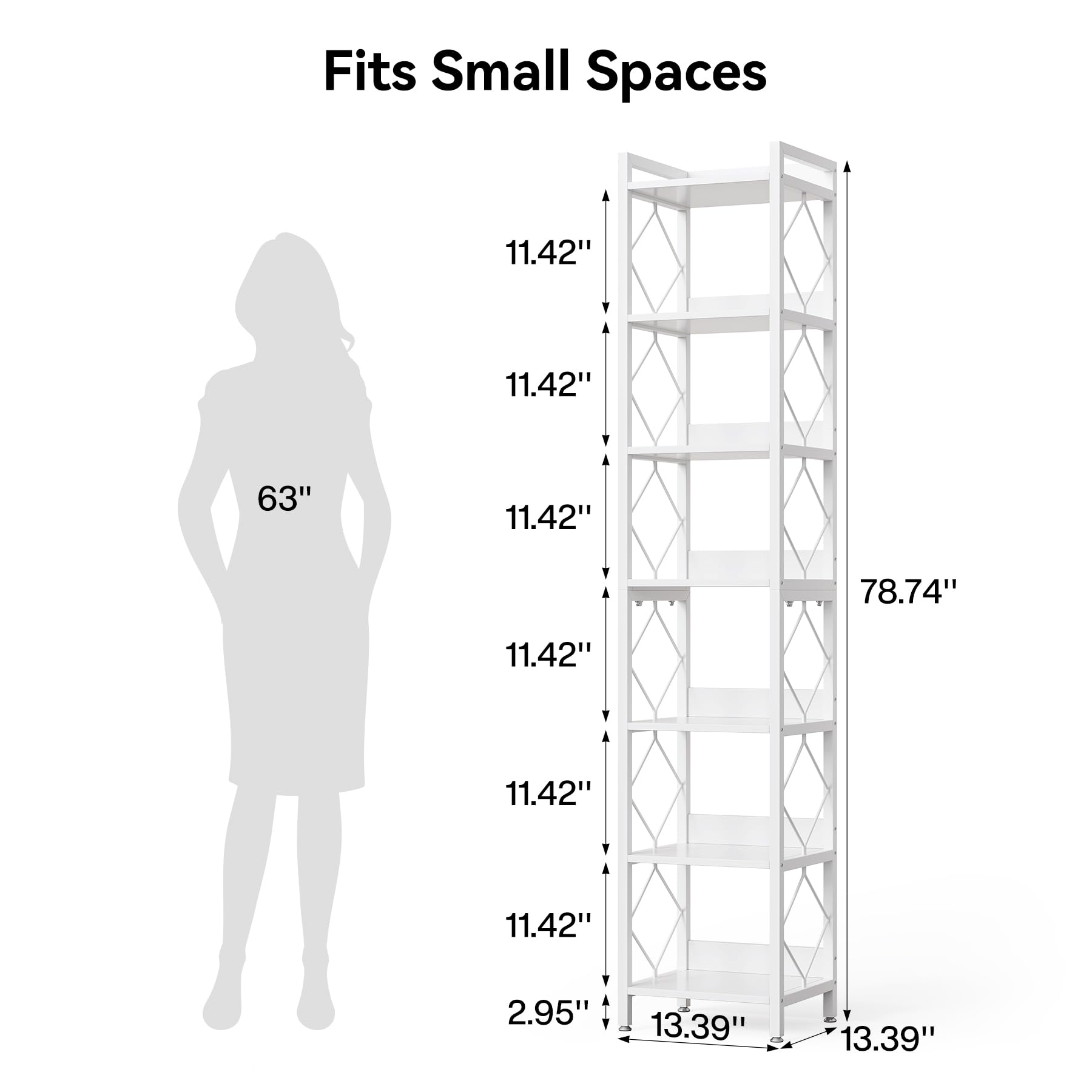 Book Shelf, 7-Tier Tall Bookcase, 78.7" Wooden Display Shelves with Sturdy Metal Frame for Living Room, Modern Narrow Standing Bookshelves for Bedroom, White Office Shelf for Small Spaces