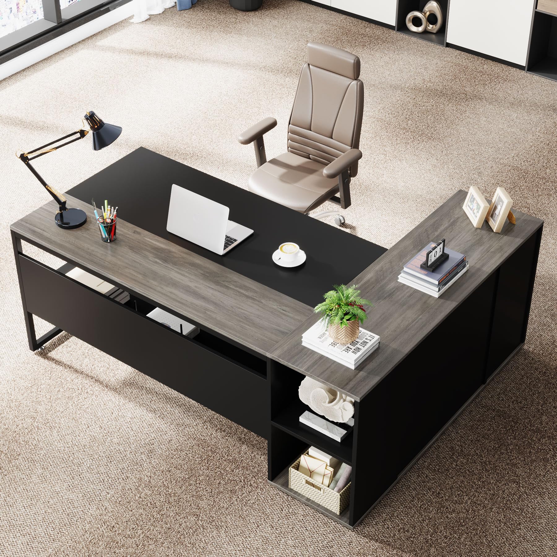 Large Executive Desk with File Cabinet, 71 inch L Shaped Computer Desk Office Desk