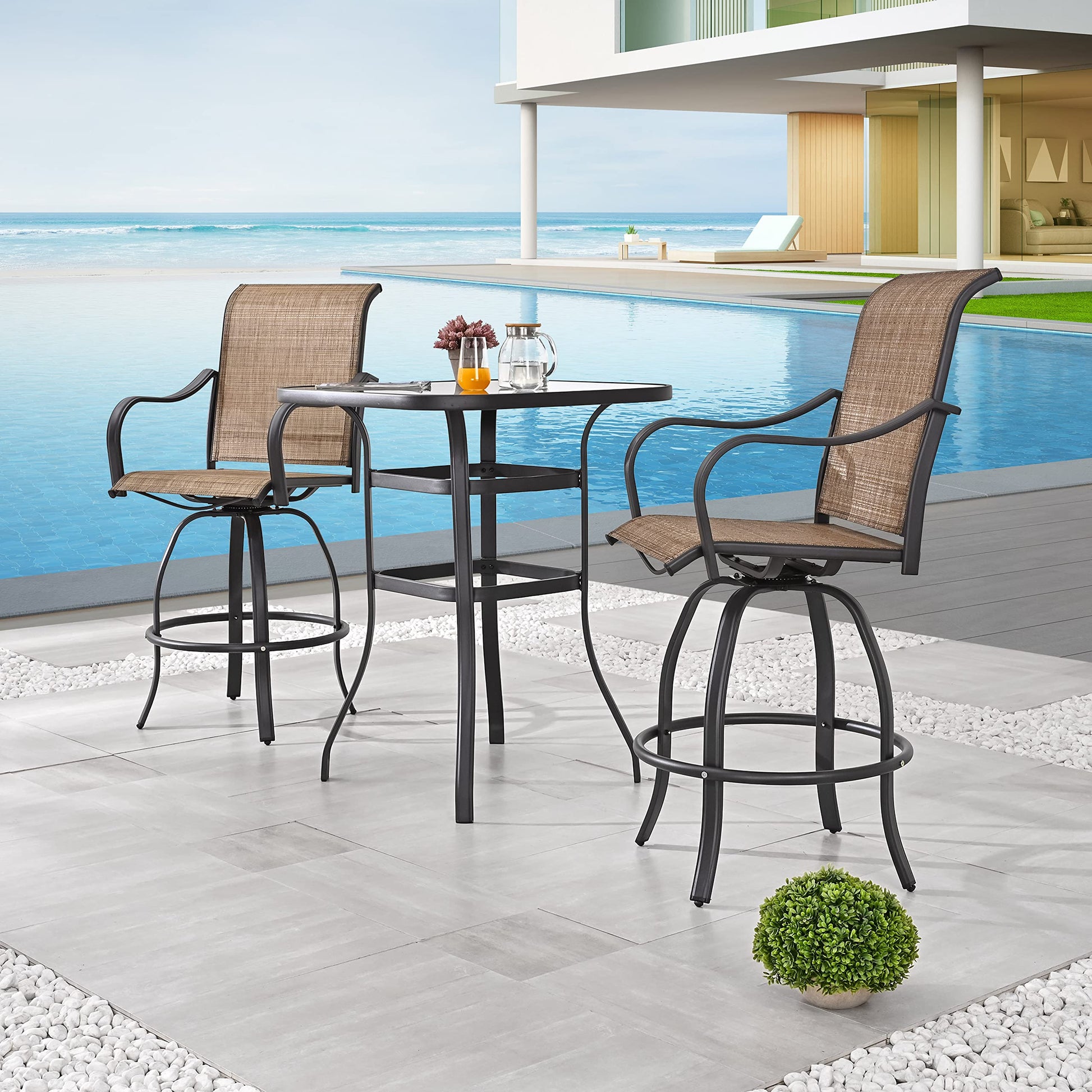 Patio Bar High Swivel Stools 2 Tall 1 Height Outdoor Bistro Table