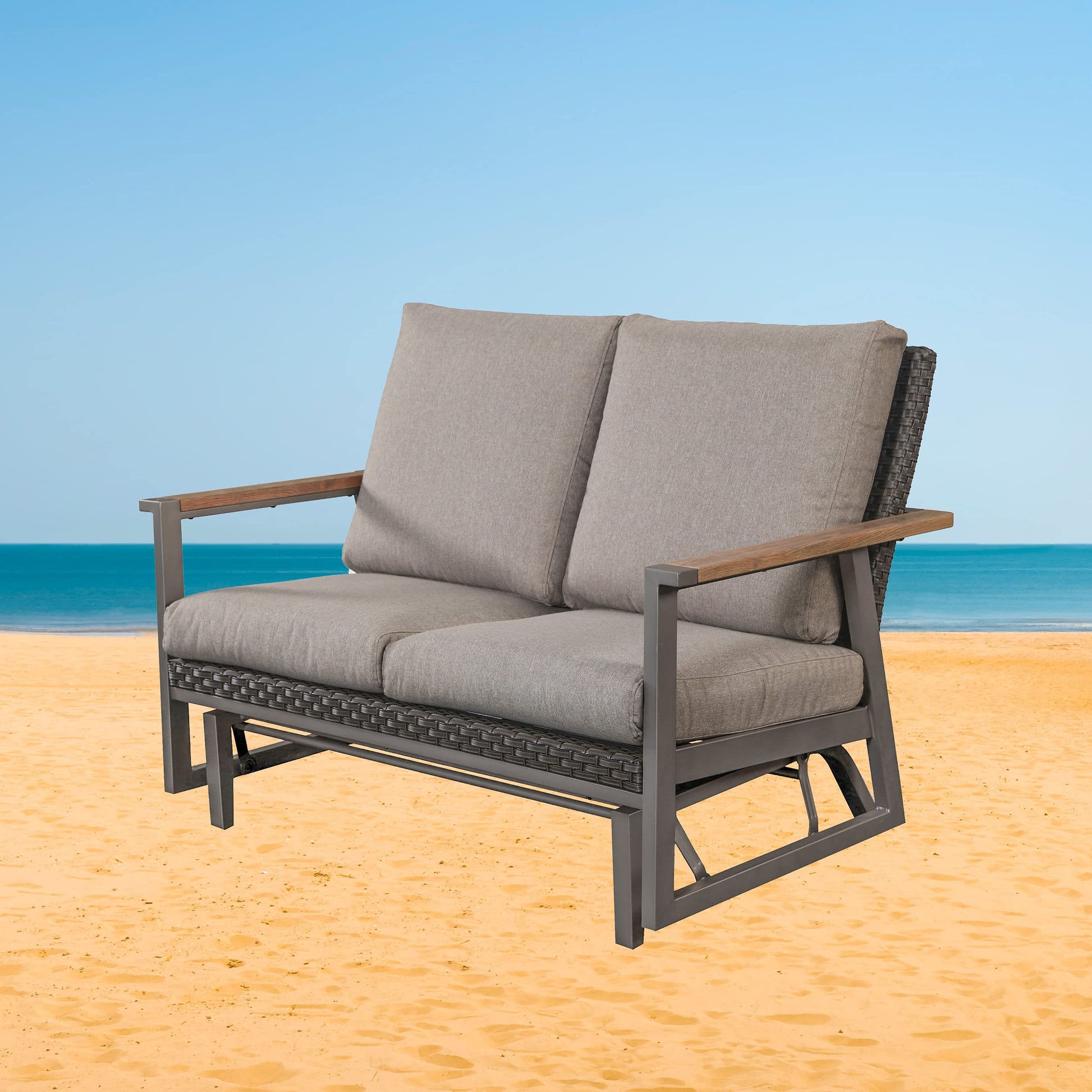 - GLIDER LOVESEAT: This patio glider looks simple and high-end, ideal for any outdoor space such as patio, garden, courtyard, balcony, porch, around swimming pools.