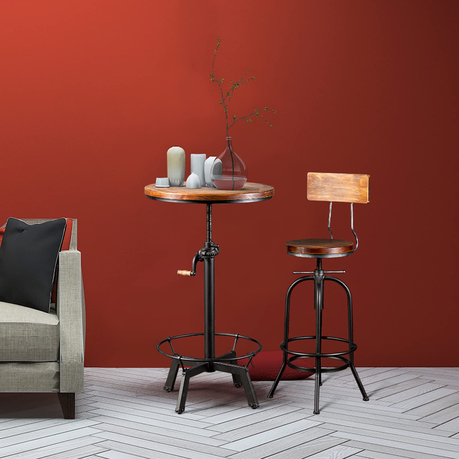- Crafted from solid pine wood and strong metal. | Smooth curved corner round edge of the desktop, more secure and practical. | Powder coating craft protect pub table from rust; | Feet are fitted with adjustable foot plug to avoid scratching the floor and adjust the height to suit the situation.