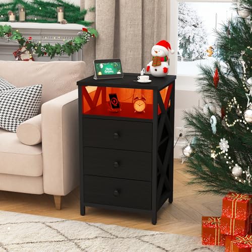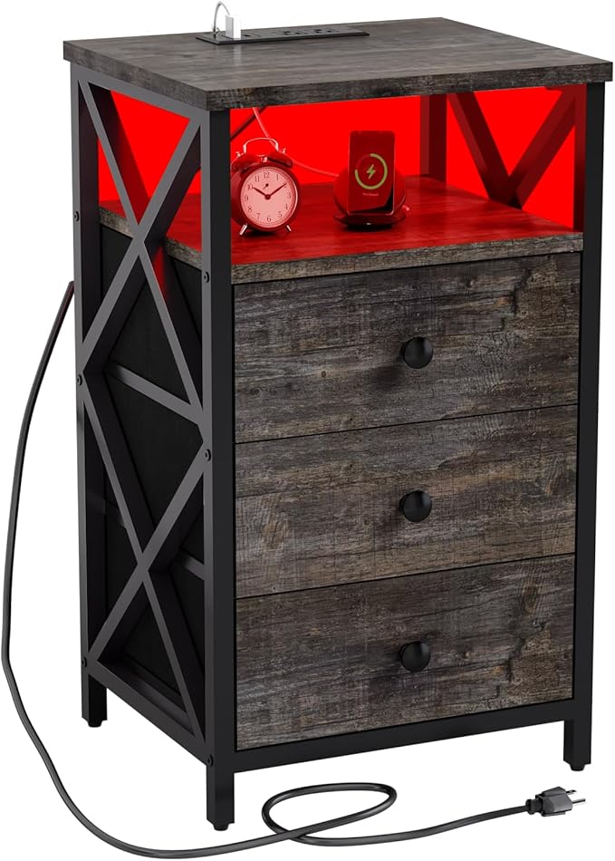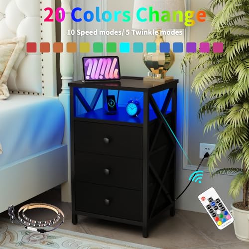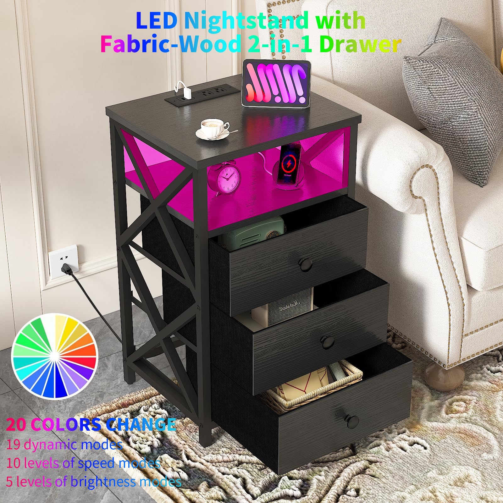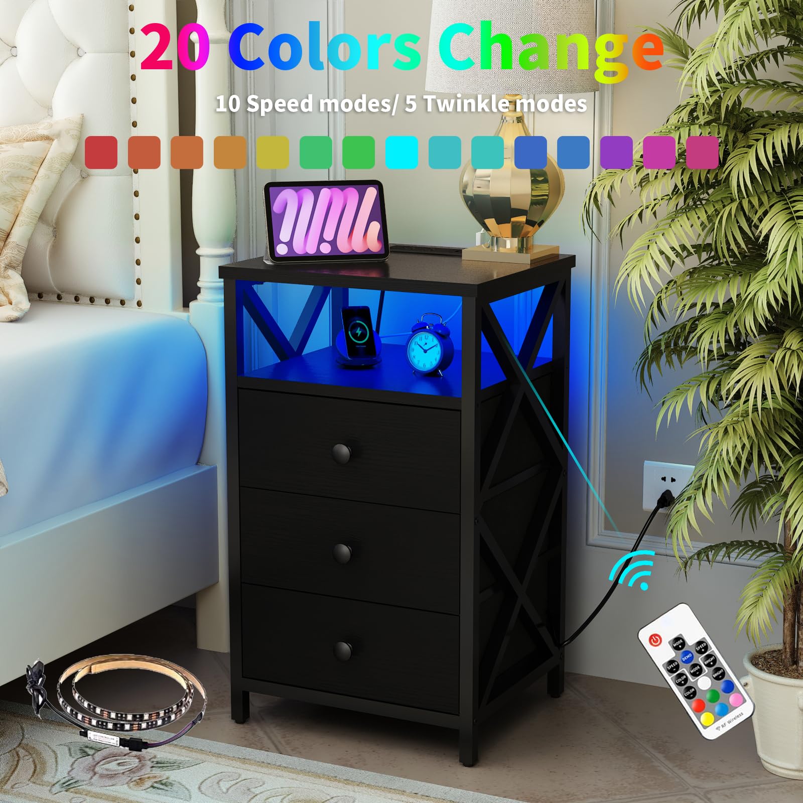 LED Nightstand with Charging Station, Tall Dresser for Bedroom with LED Light