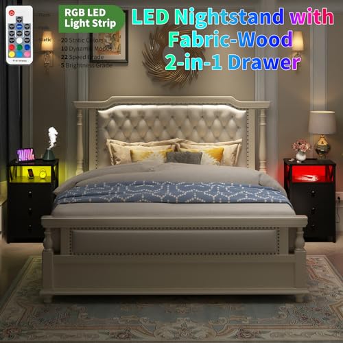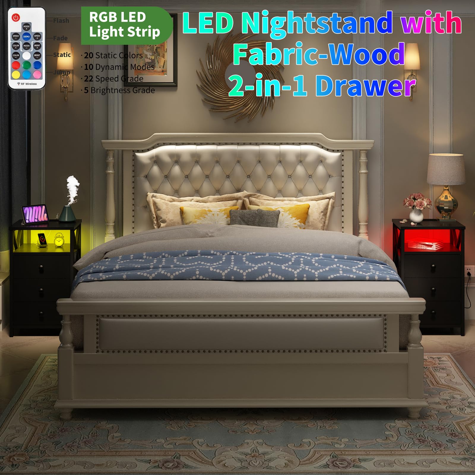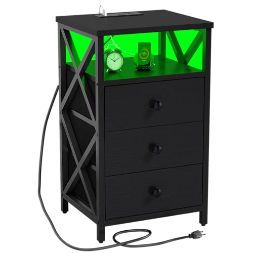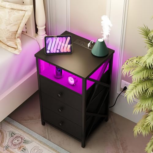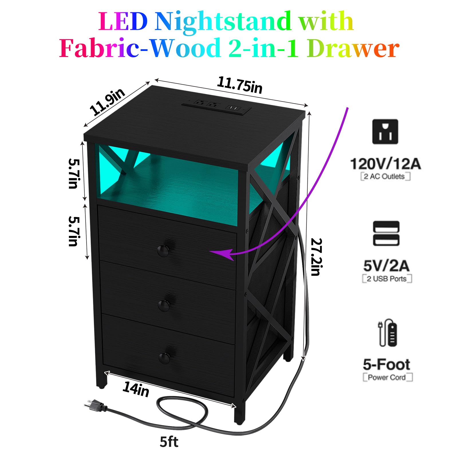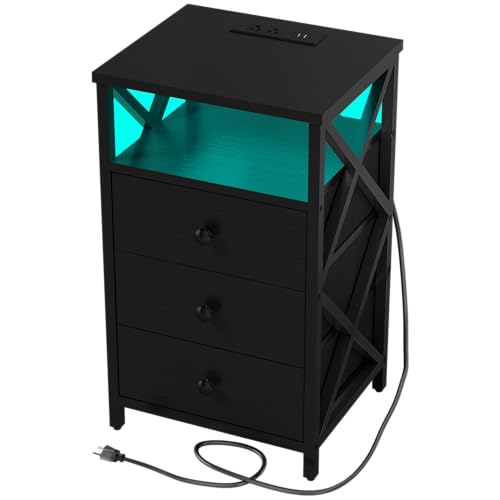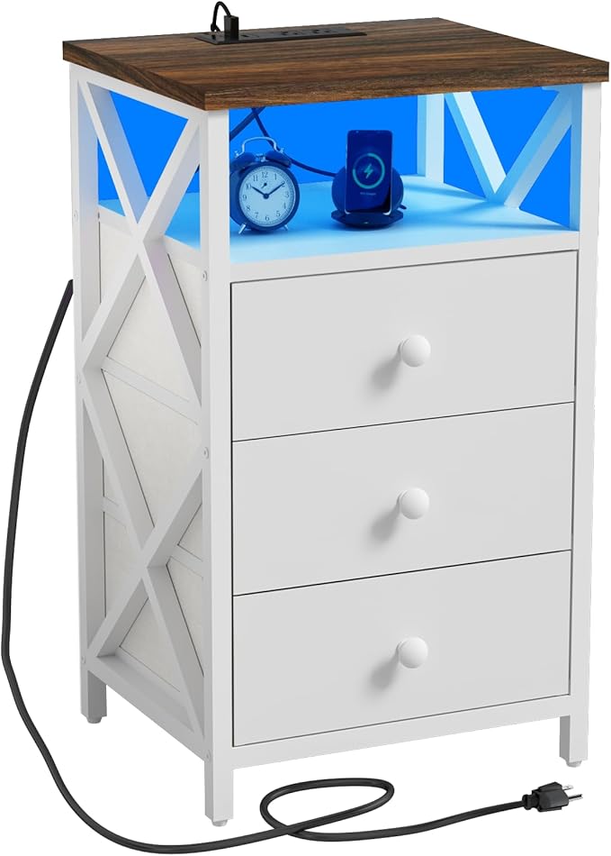 LED Nightstand with Charging Station, Tall Dresser for Bedroom with LED Light