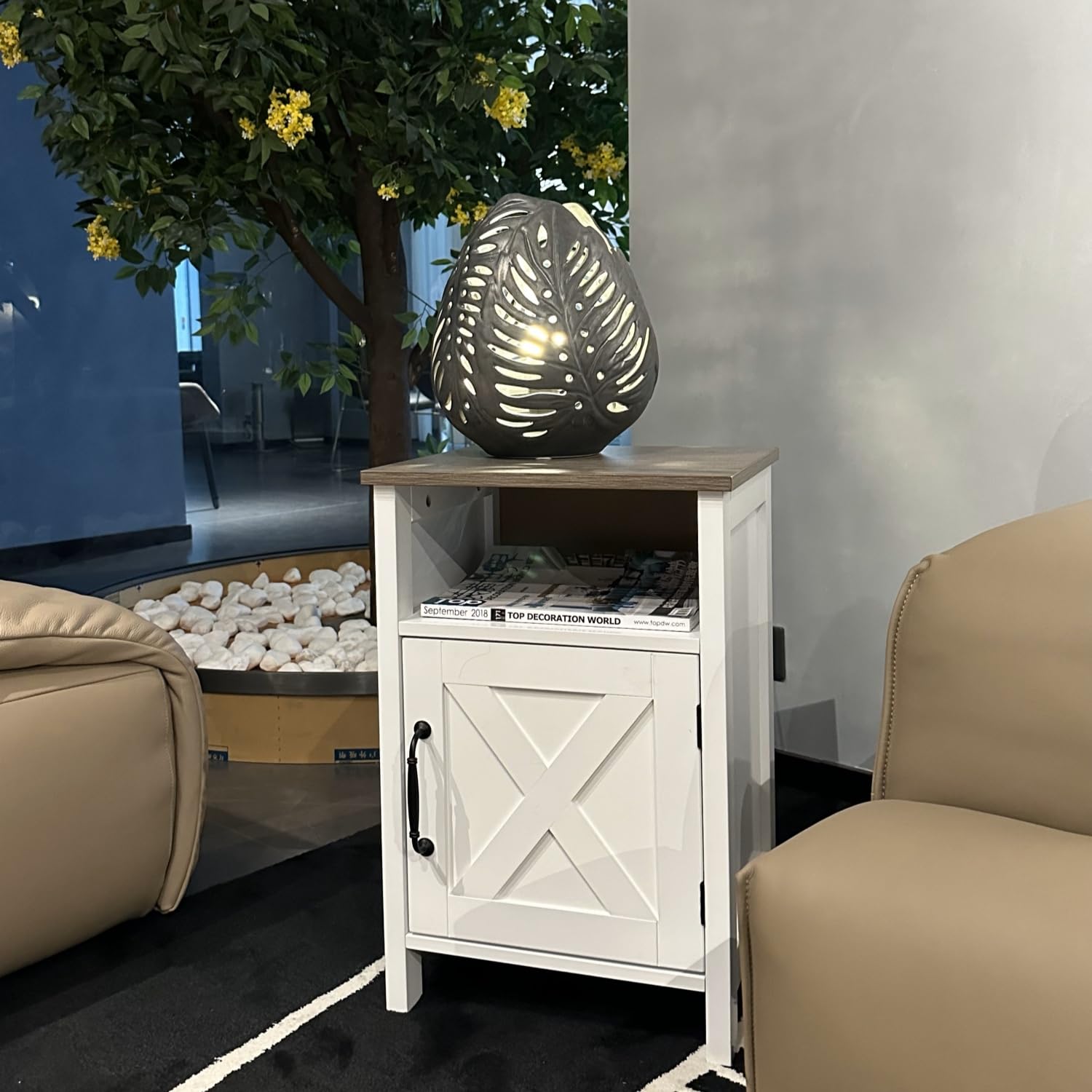 - This nightstand perfectly combines rustic farmhouse elegance and barn door design, which provides more storage and display space, effortlessly embodying the modern style while staying stylishly timeless. Whether used as a nightstand or an end table, it's guaranteed to look stunning.