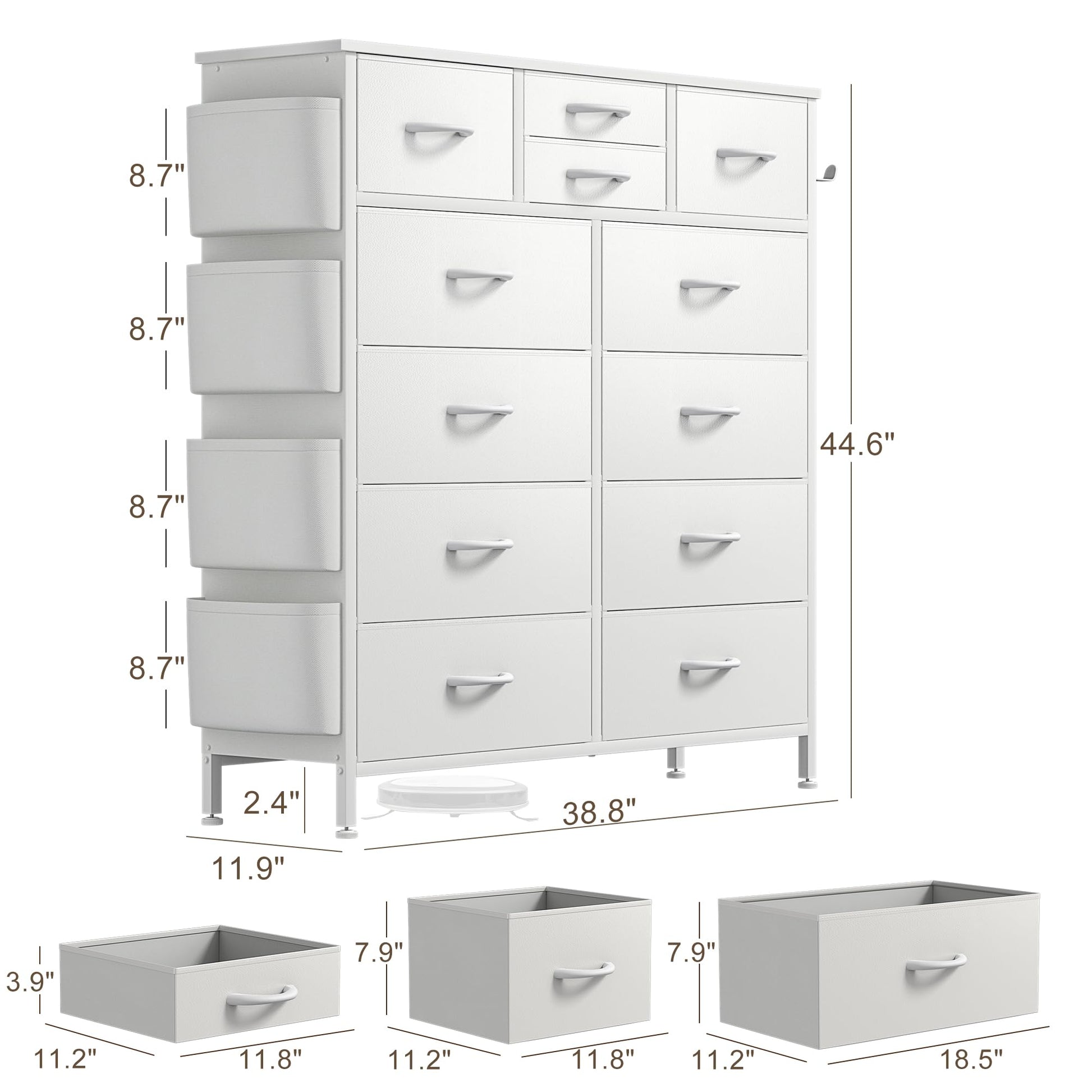Dresser for Bedroom with 12 Drawers, Tall Dresser Chest of Drawers with Side Pockets