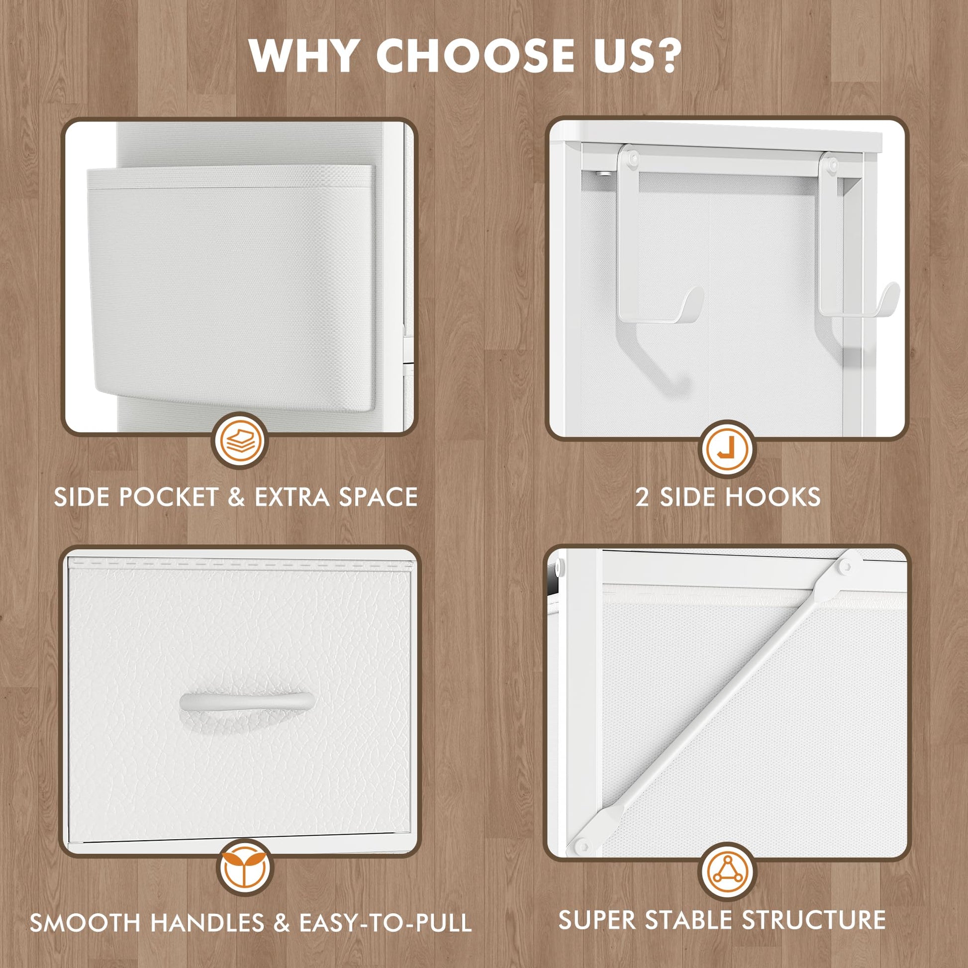 - Upgraded & Side Pockets & Hooks: Small design, big convenience, our side pocket hooks of the bedroom dresser redefine convenience! which allows you to hang small items such as keys, phones, glasses, scarves, and more, keeping them visible and easily accessible.