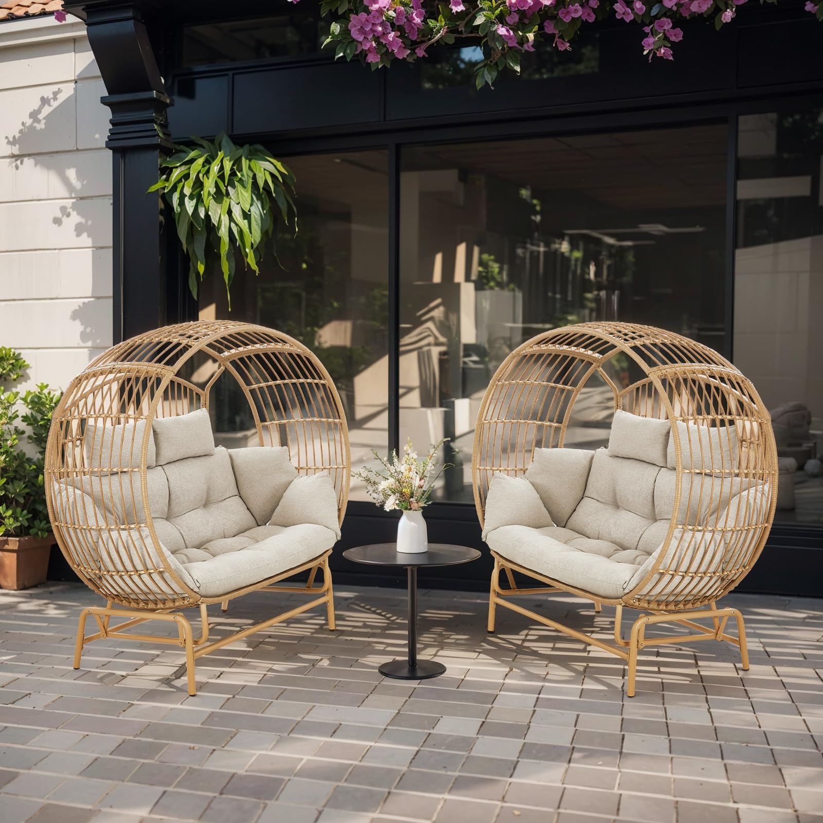 - 2 Person Egg Chair: With a length of 61.8'' and a height of 59.8'' the oversized patio lounge can accommodate 2 adults. Just imagine lounging inside on a gentle sunny afternoon, wrapped in a blanket while reading a book—how cozy that would be! This is a perfect place to relax and enjoy the beautiful view