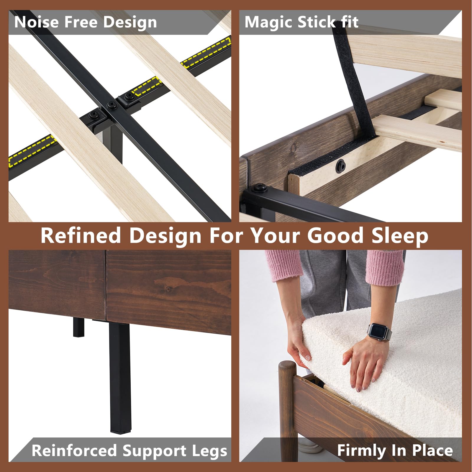 - Ergonomic Headboard & Embedded Footboard Mid-century style bed frame simple & elegant, 175° curved design let you lean on the headboard comfortly, while embedded footboard holds the mattress firmly
