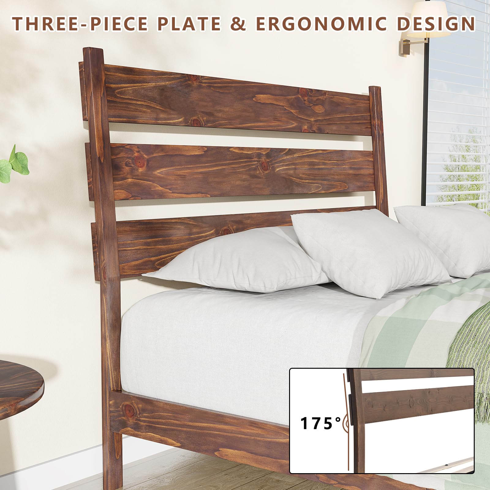 Solid Wood Bed Frame with Ergonomic Headboard, Full Size Mid Century Wooden
