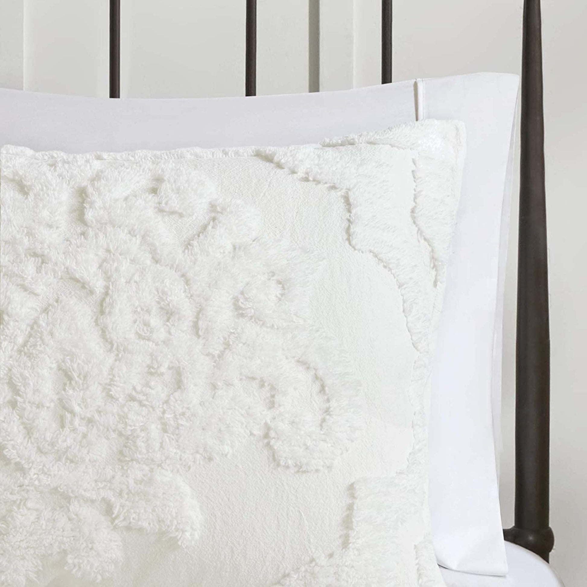 Madison Park Tufted Chenille Cotton Comforter, All Season Bedding Set, Matching Shams, Viola, Damask Off White King/Cal King(104"x92") 3 Piece