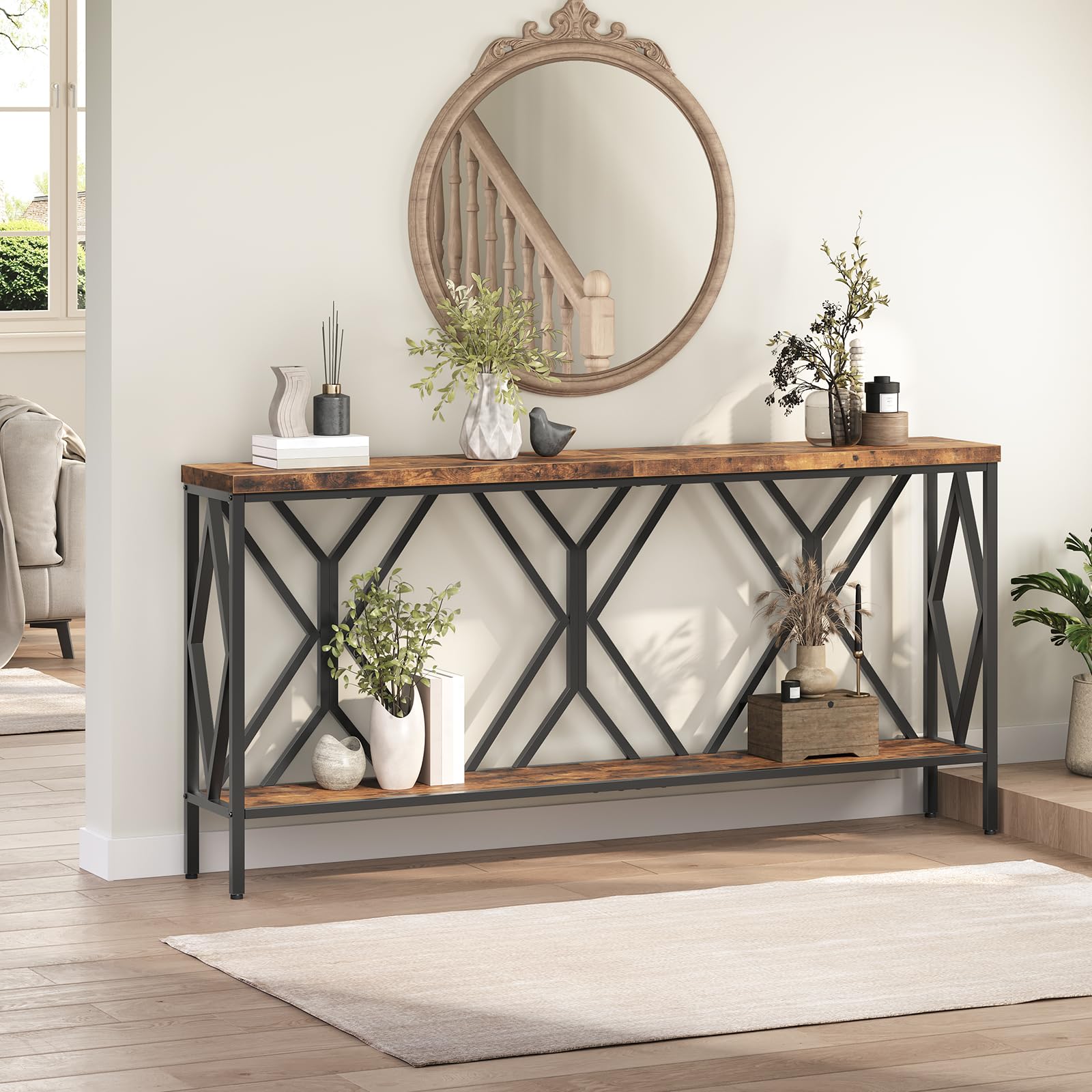 - 2-Tier Storage: Sized 70.9"L x 11.8"W x 33.5"H, the 2-tier extra long console table fits tight spaces perfectly. The long top holds photo albums, lamps, plants, and other decor, while the bottom easily stores storage baskets or books, making the most of every inch of space