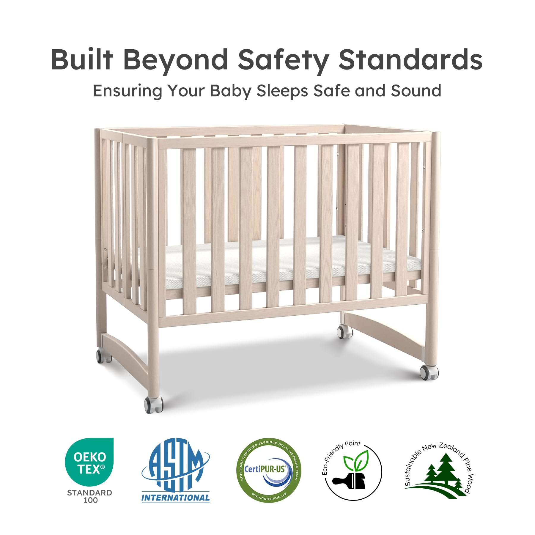 - Safe for Your Baby: Our Portable Mini Crib is crafted from sturdy, sustainable New Zealand pine wood for lasting durability and elegance. It meets all safety standards and regulations, ensuring your baby's safety.