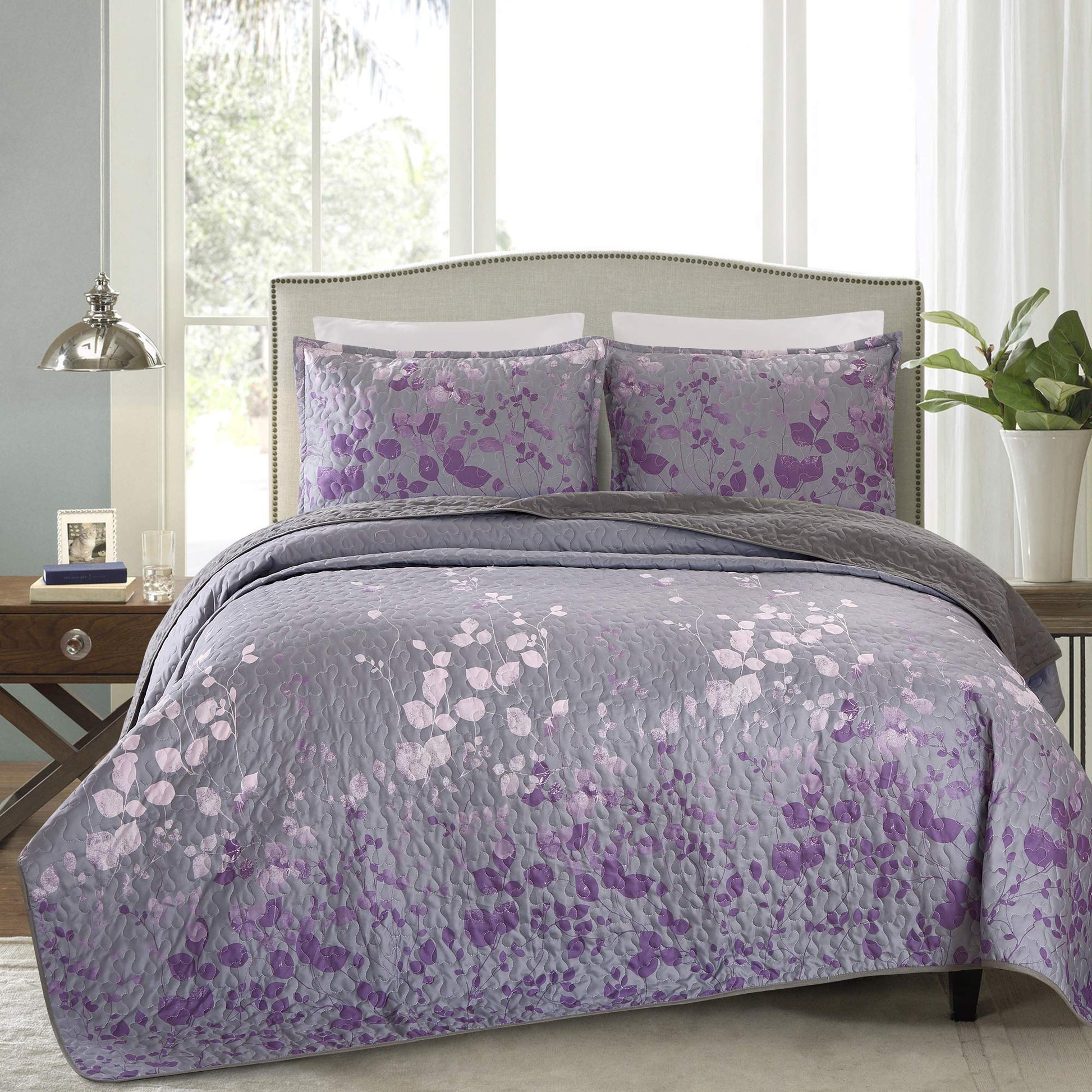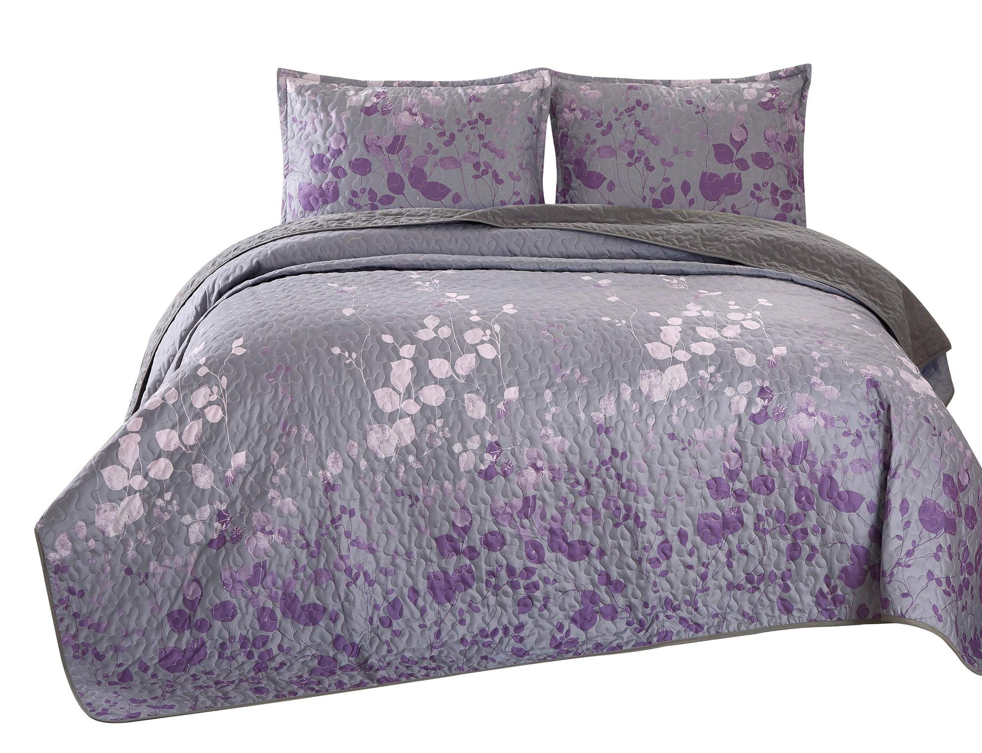 3-Piece Fine Printed Oversize (118" X 95") Quilt Set, Bedspread Coverlet