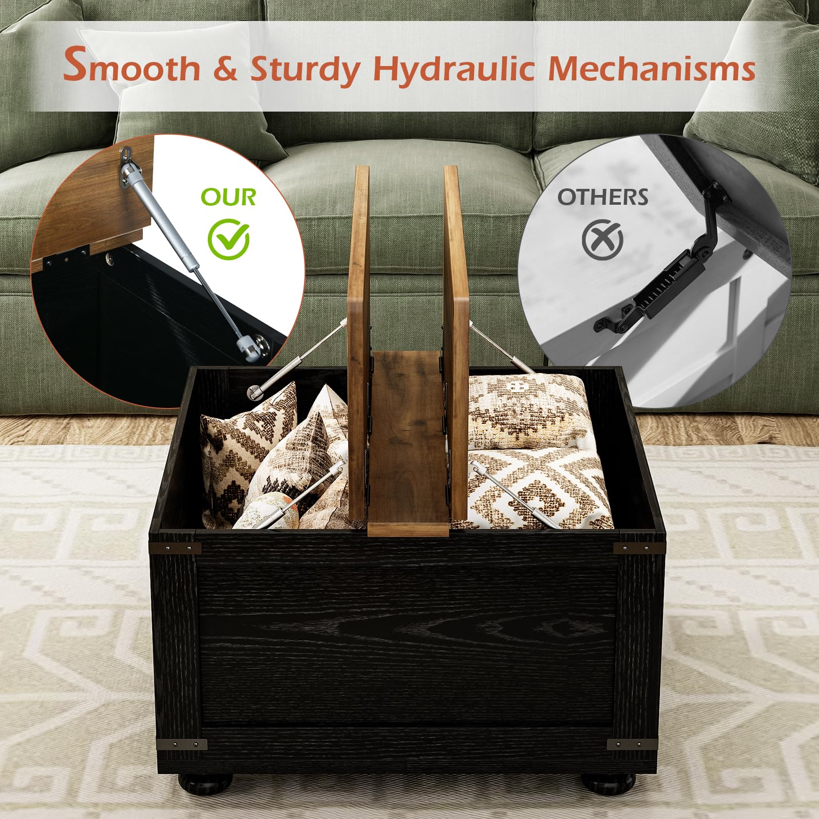 Farmhouse Coffee Table with Hydraulic Gas Rod, Black Square Coffee Table
