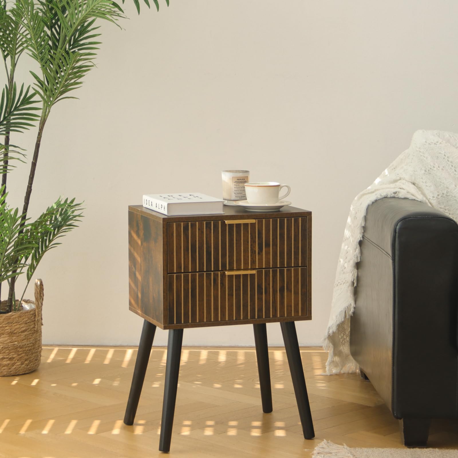 Mid Century Nightstand, Modern Bedside Table with 2 Drawers, Small End Side Table for Small Space