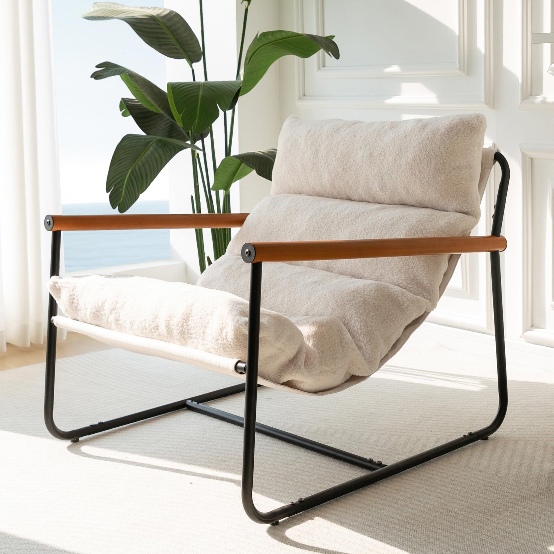 - Covered in fuzzy fabric make this modern accent chair soft and comfortable. Simple lines with clean and neatly cut, combined with steel frame, easily match most home and furniture decor. No matter if it is placed in the living room, bedroom, balcony, porch, or other space.