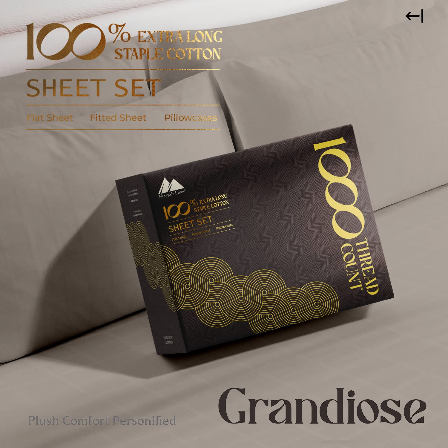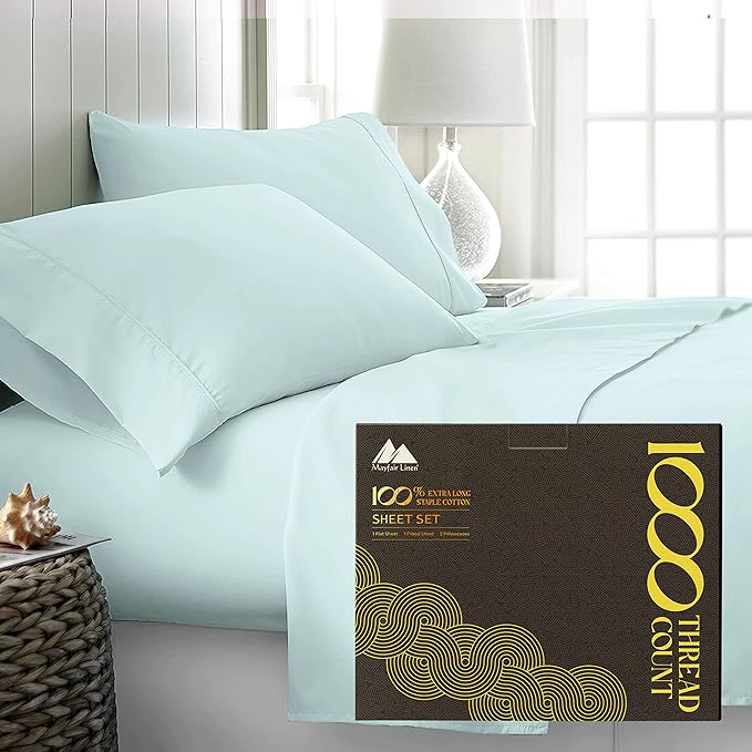 - Feel The Legendary Softness of 100% Egyptian Cotton Sheet Set: Meet the gold standard in luxury bedding—Mayfair Linen’s 100% Egyptian Cotton Sheets Queen Size. Crafted from extra long staple cotton and sateen weave, our 1000 thread count queen sheet set Egyptian cotton is incomparably soft and comfy to sleep on. Noticeably thick and heavy, these Egyptian cotton queen sheets are at par with the best 5-star hotel bedding