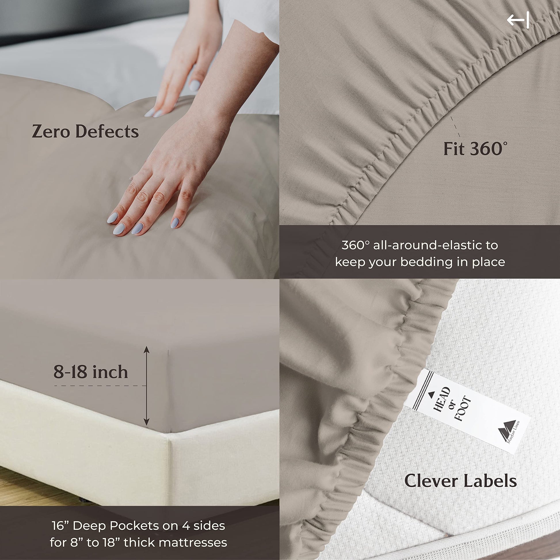 - Designed To Fit Your Mattress Perfectly: The fitted bedsheets have extra deep pockets and all-around elastic to fit up to 18-inch mattresses. Head/foot tags indicate the length and breadth sides of the sheet to make the bed quickly. Our Egyptian cotton queen sheet set includes 1 Flat Sheet (90”x 102”), 1 Fitted Sheet (60”x 80” + 16” deep pocket), and 2 Queen or Standard Size Pillowcases (21”x 32”). If you need extra pillow cases, visit our Mayfair Linen Bedroom Collection