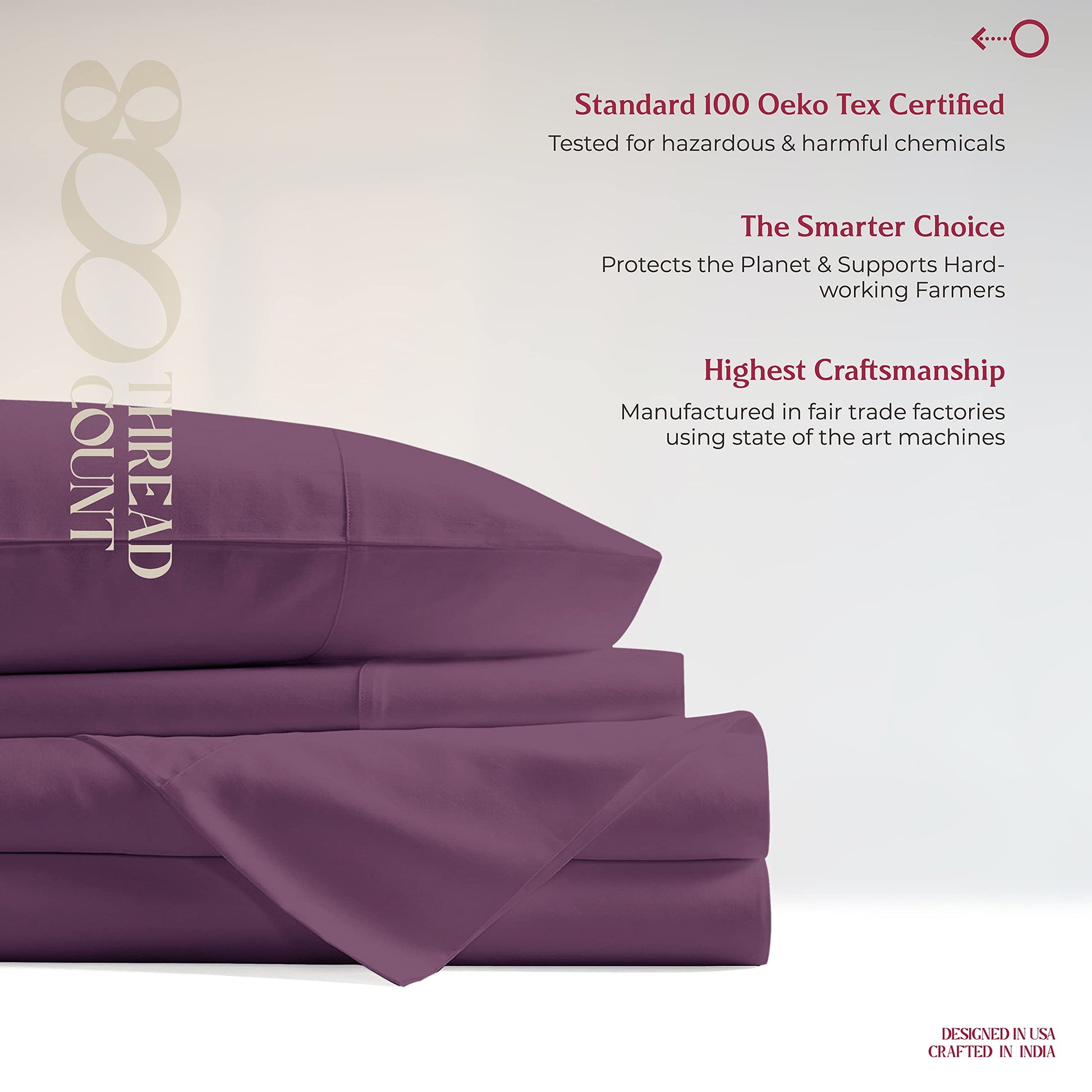 800 TC Egyptian Cotton Sheets - 4 Piece Plum Full Size Cooling Sheet for Hot Sleepers