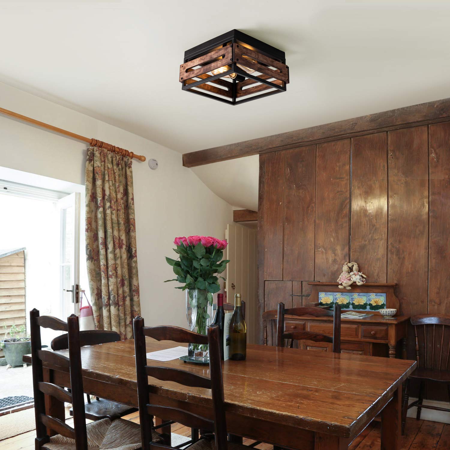 - Farmhouse Vintage Style This square rustic kitchen light fixture is made of natural wood and a rust-proof metal frame with a wood grain finish creating a rustic vintage house style. The rustproof treatment of the lamp body and the ceramic design of the lamp opening make this fixture more durable.