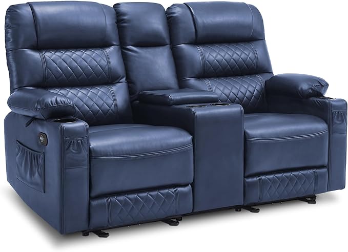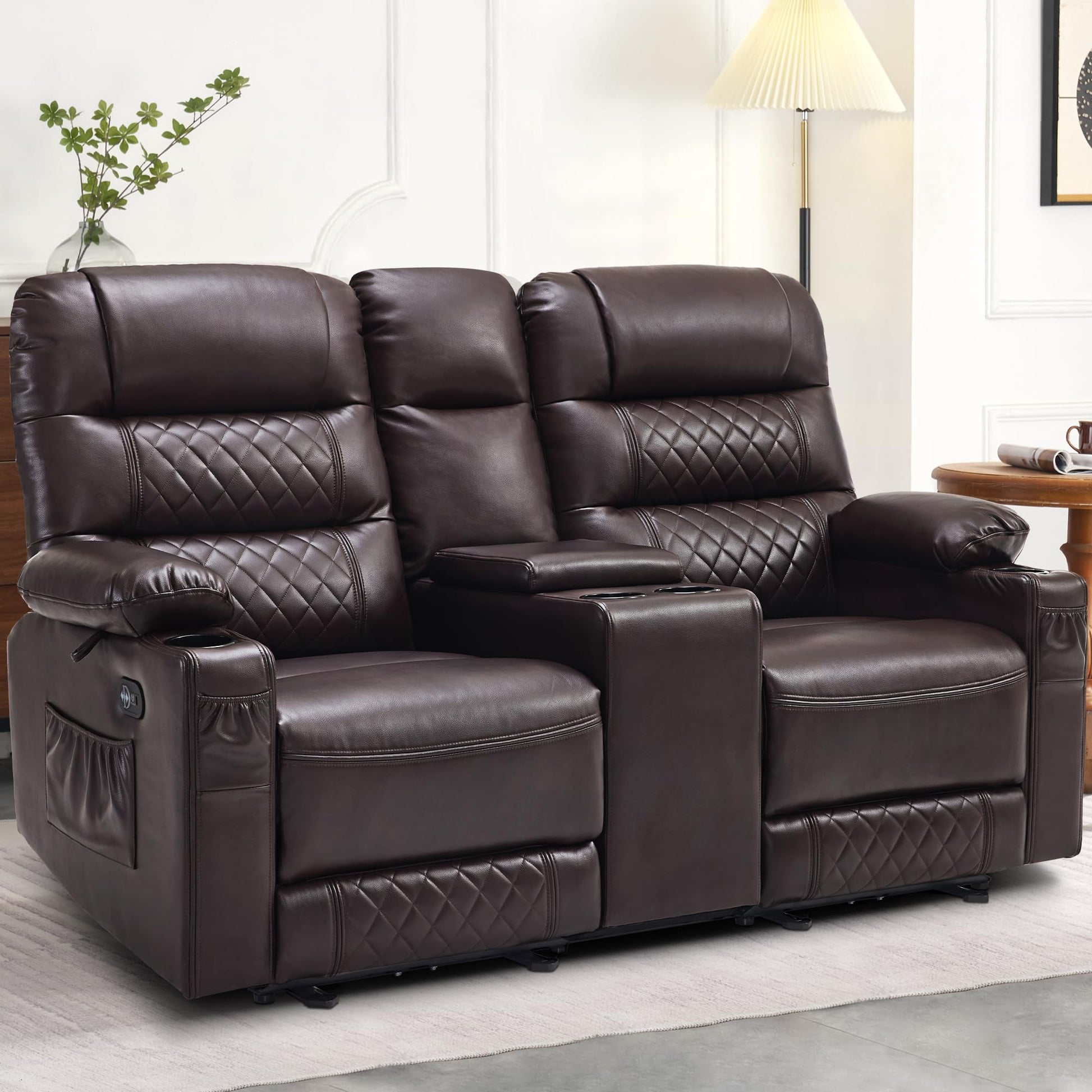 Loveseat Recliner with Console, Electric Reclining Loveseat with Heat and Vibration, Cup