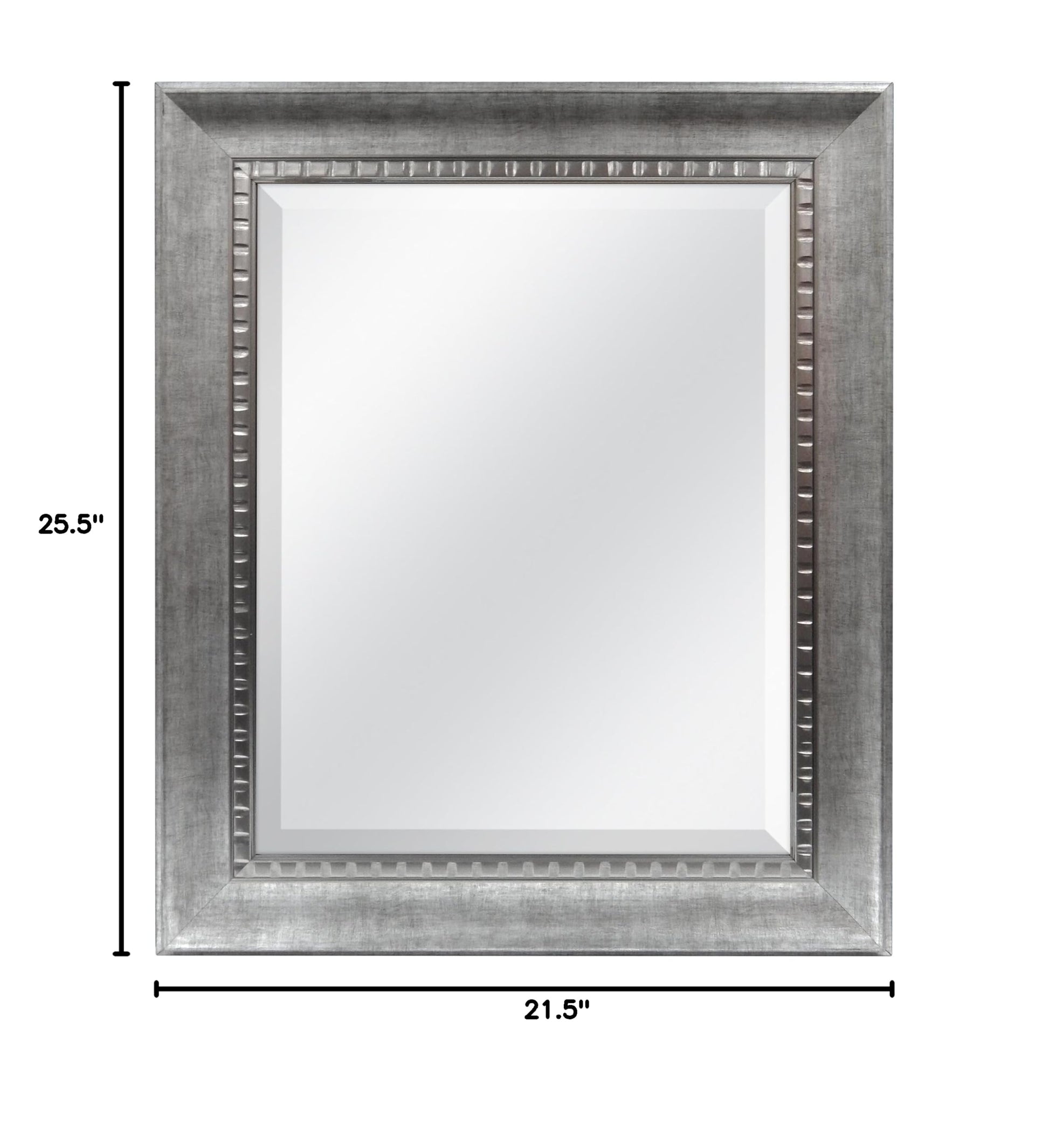 - The 3 inch wide frame has a brushed antique silver finish with silver dentil molded inner edge