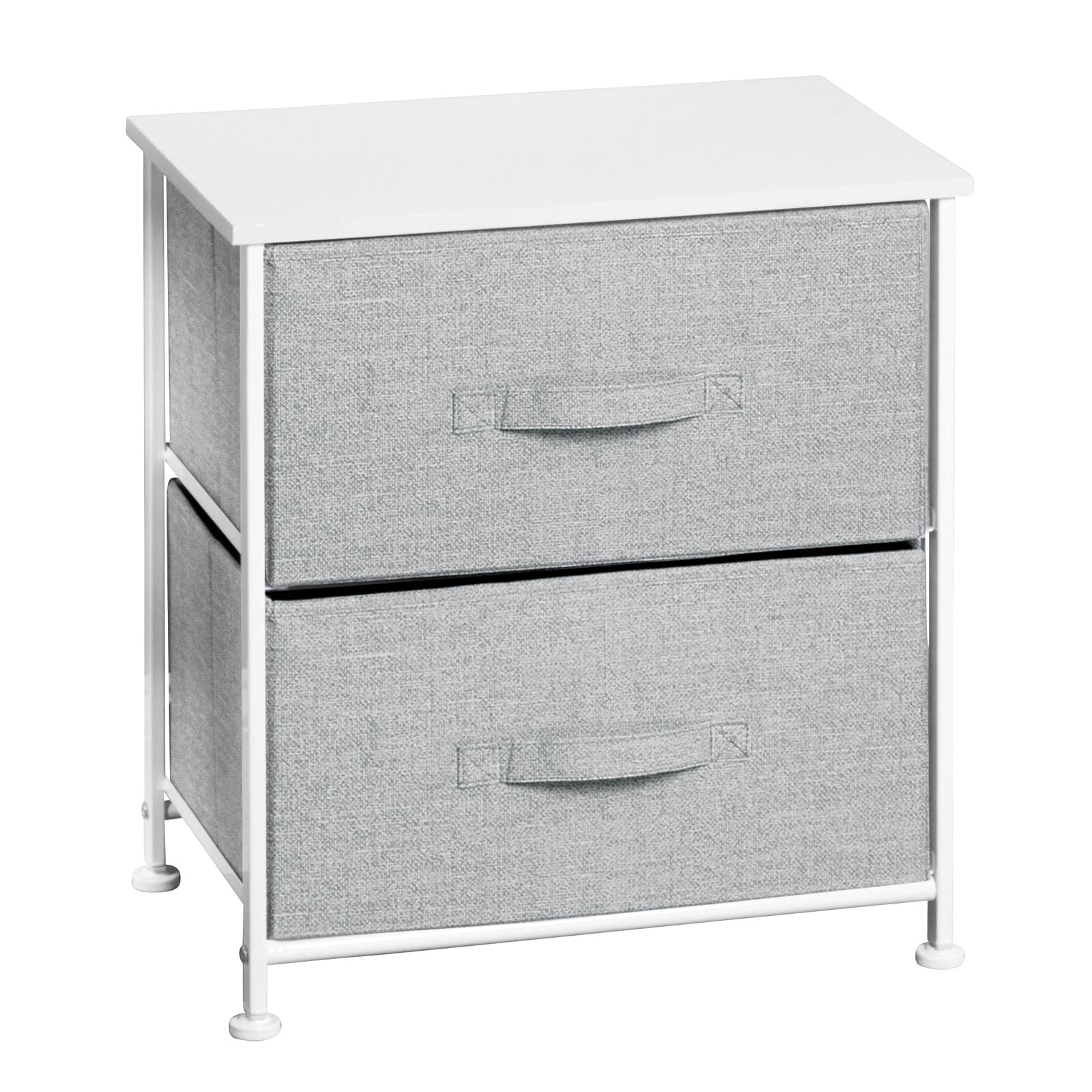 - 2 DRAWER CHEST: Features 2 removable fabric drawers with reinforced base; Use next to bed for matching night stands, or in any room as an accent table; Place inside the closet to create extra storage and keep clutter under control; Perfect for your smart phone, sound machine, alarm clock, journal, magazines, books, reading glasses, and beverages handy; Mix & match with other mDesign furniture storage for endless organizational possibilities