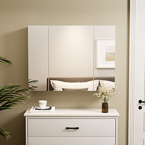 Medicine Cabinets Bathroom Mirror Cabinet with 3 Door 31.5 x 23.6 Inch Bathroom Wall