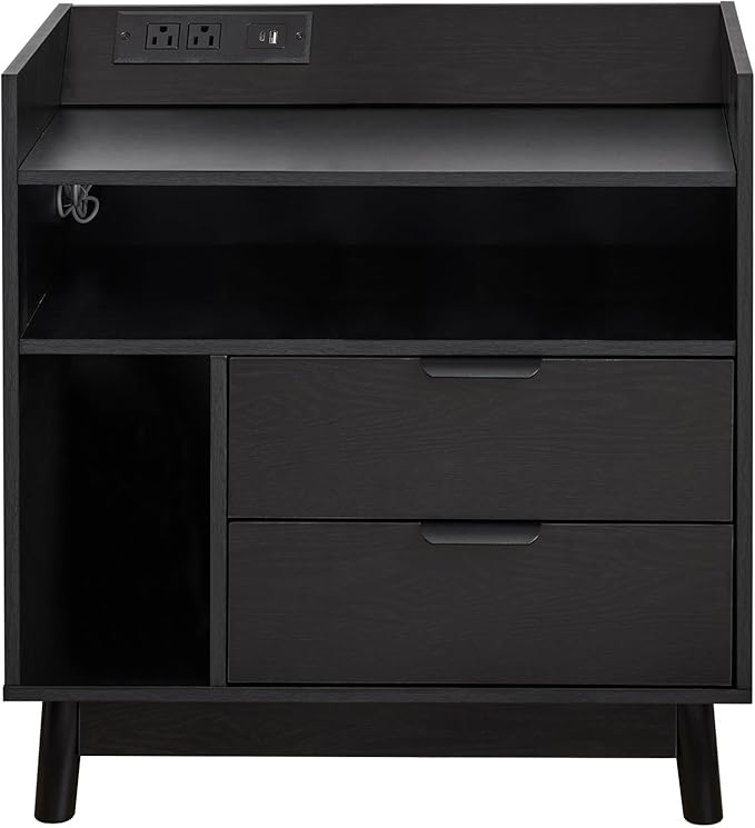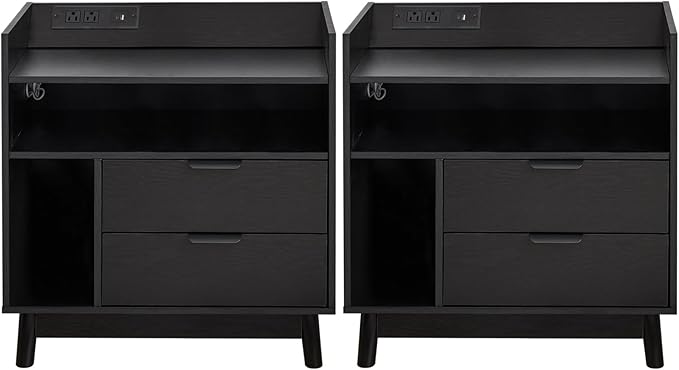 - MELLOLIVIN nightstand with charging station is arranged with 2 Outlets , 1 USB port and 1 Type C port, almost covering all types of electronic products on the market. You can easily connect electronic devices to this modern nightstand for charging, such as smartphones, tablets, or bedside lights, say goodbye to the worry of insufficient sockets. This end table adopts a tilted space design at the charging station, which is more in line with customer usage habits, extends the charging distance and also makes the product appearance more three-dimensional sense.