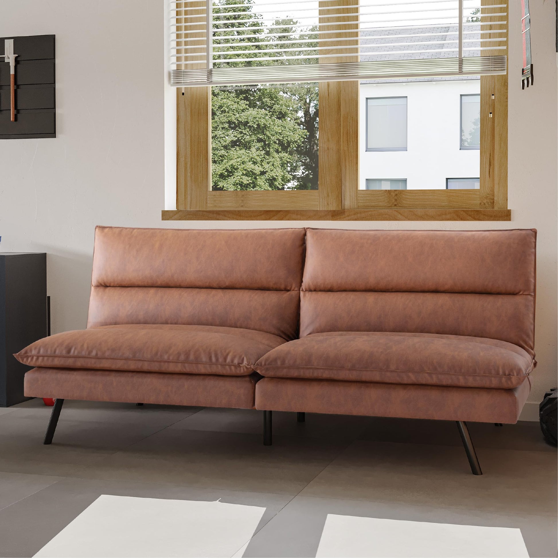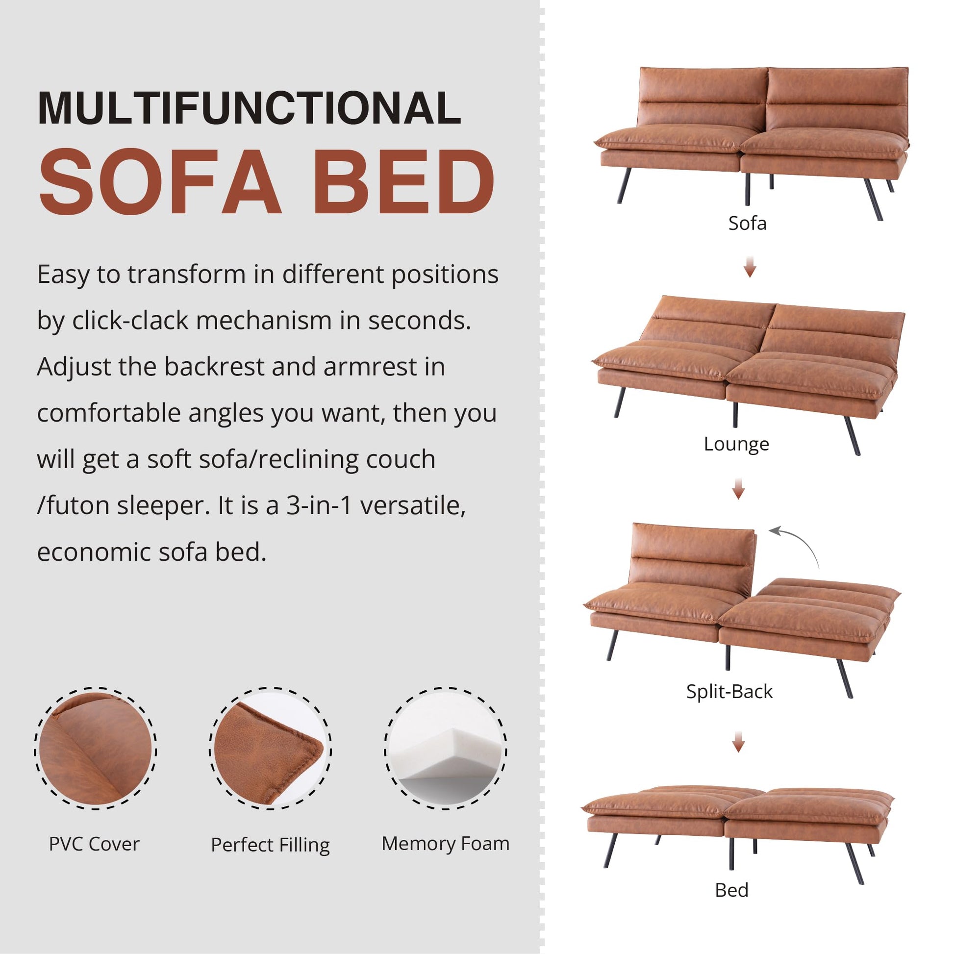 - CONVERTIBLE FUTON SOFA BED: This Futon sofa bed can be adjusted to fit your needs as a coach, lounger or sleeper bed. The backrest of the sofa allows one side to tilt while the other side remains upright. You can chat with friends comfortably, lie on it to read and watch TV, or take a cozy nap.
