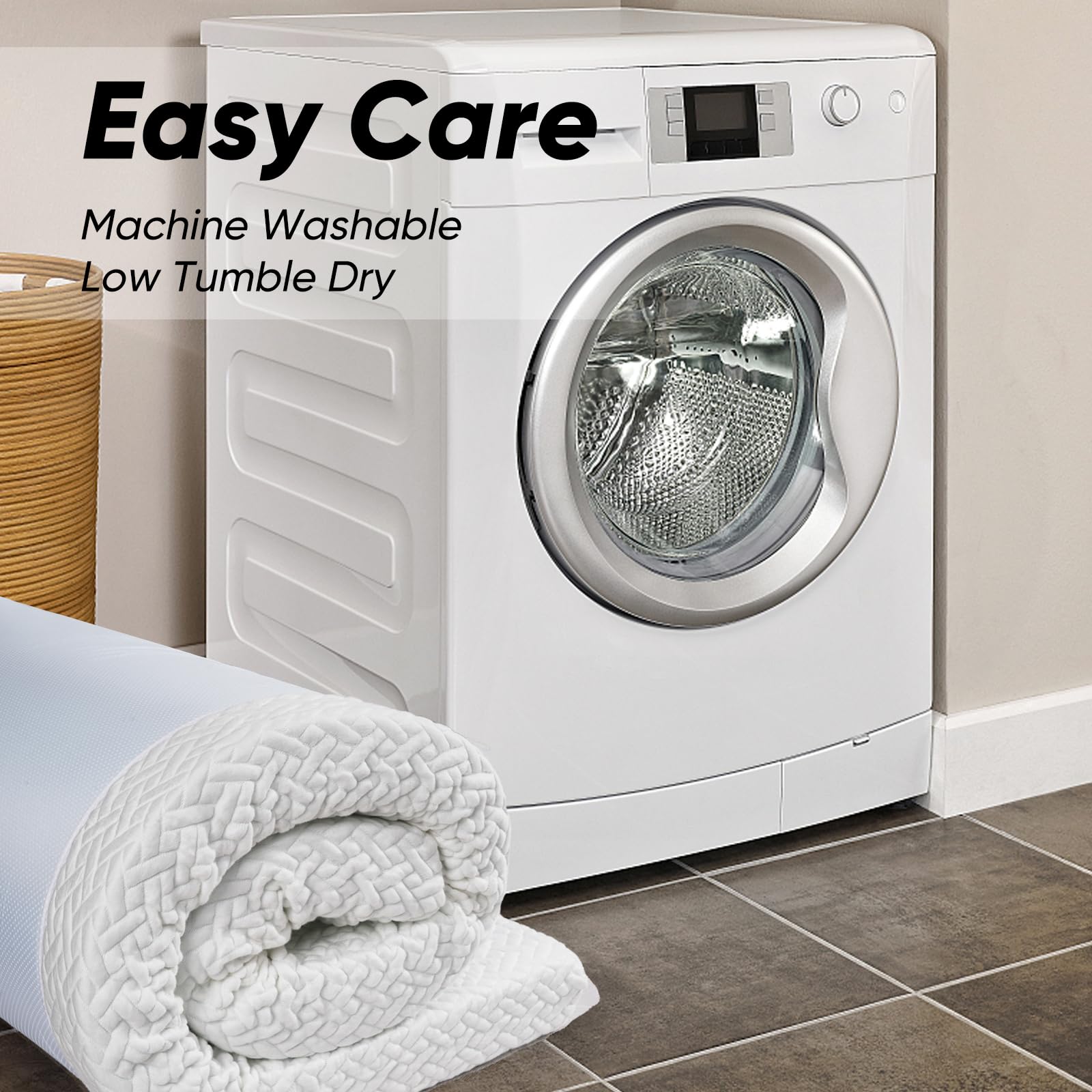 - Certified Quality & Washable bed toppers are CERTIPUR-US certified, ensuring low odor, high-quality materials, excellent performance, and durability. Each memory foam has undergone a rigorous pressure rebound test to ensure long-term durability without collapsing. The mattress cover can be machine washed in a gentle cycle with cold water and tumble dry on low for maintenance. Please avoid washing the memory foam itself and direct sunlight exposure to prolong the mattress topper's lifespan.